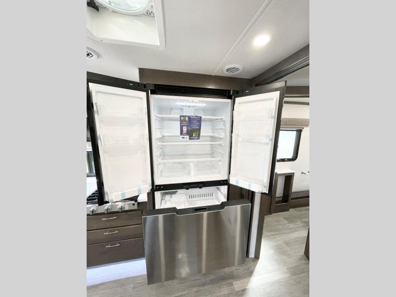 The Europa Super C diesel motorhome by Dynamax is coming to you with all the power, durability, and luxury you need for your adventurous lifestyle. You will love the solid surface countertop with LED edge lighting in the kitchen, the premium vinyl flooring throughout, and the clean, contemporary styling. The on-demand water heater is a luxury you won't want to travel without, and the multiplex wiring with a touch screen command center includes switch panels, and Bluetooth Smart Phone app control for ease of use. There are dual 12V 8D AGM deep-cycle maintenance-free house batteries and a single 200-watt solar panel to go off-grid if you choose, and the 12,000 lb. trailer hitch will allow you to bring along the off-road toys. Some of the exterior features that make this coach great are the armless patio awning with LED lighting, the automatic four-point hydraulic leveling jacks, and the eye-catching custom full-body paint package!