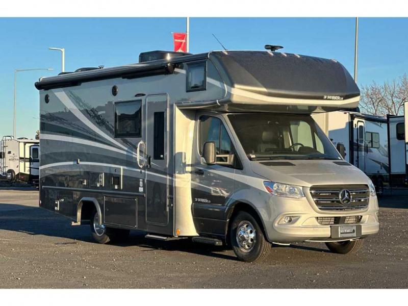 Each one of these Dynamax isata 3 Class C diesel motorhomes were designed to last for years of fun with composite exterior fiberglass with no exterior wood, aluminum-framed roof trusses, and composite flooring substrate. The 2.0L l-4 turbo diesel engine will power your adventures, and the Mercedes-Benz Sprinter chassis provides a durable foundation. There is an MBUX 10.25" infotainment system and a quad-view camera system that will let the driver navigate the open road like a pro, and the added safety features are sure to bring you peace of mind. Outside, you'll be wowed by the custom full-body paint package with front-end Diamond Shield paint protection, plus there are exterior speakers, an armless patio awning with LED lights, and seamless rotocast storage compartments for your gear! Each model also includes many interior comforts to make you feel right at home, like the premium vinyl flooring throughout, hardwood craftsman-style cabinetry, solid surface countertops with LED edge lighting and backsplash, and the list goes on!