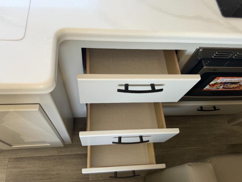 At just over 25 feet long, this motorhome is ideal for navigating campgrounds, national parks, and city stops while still offering high-end amenities and a spacious feel.