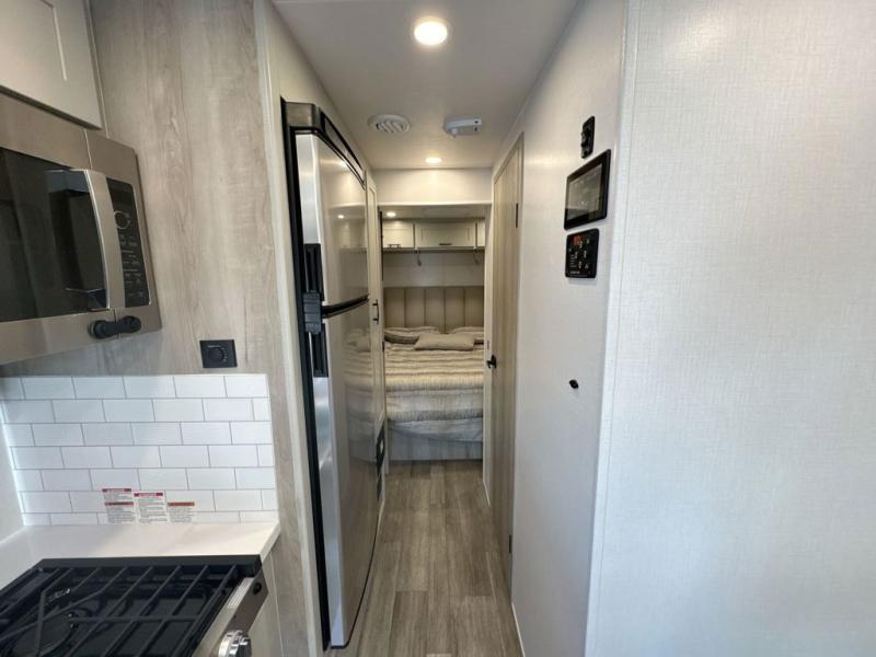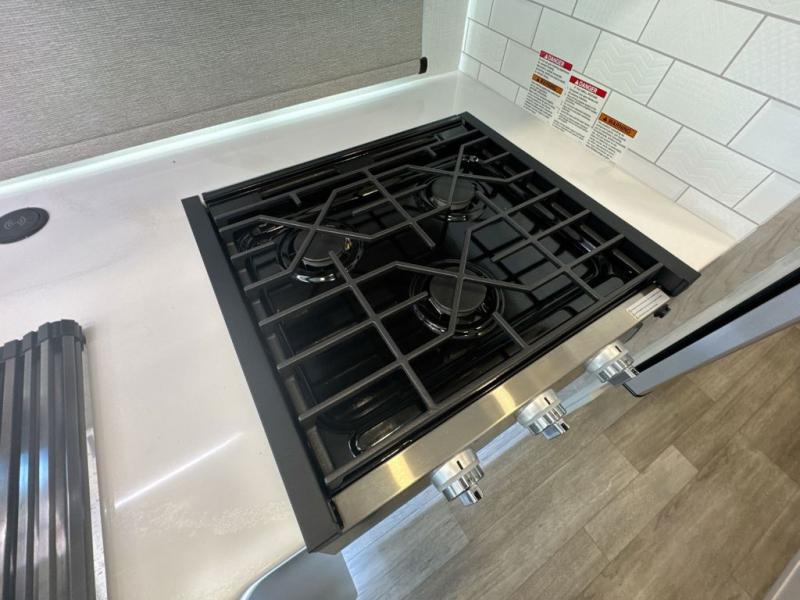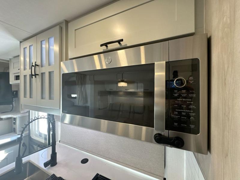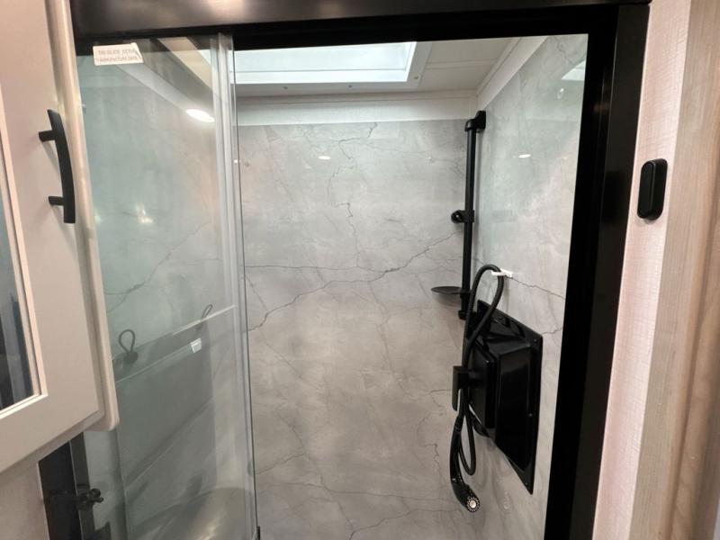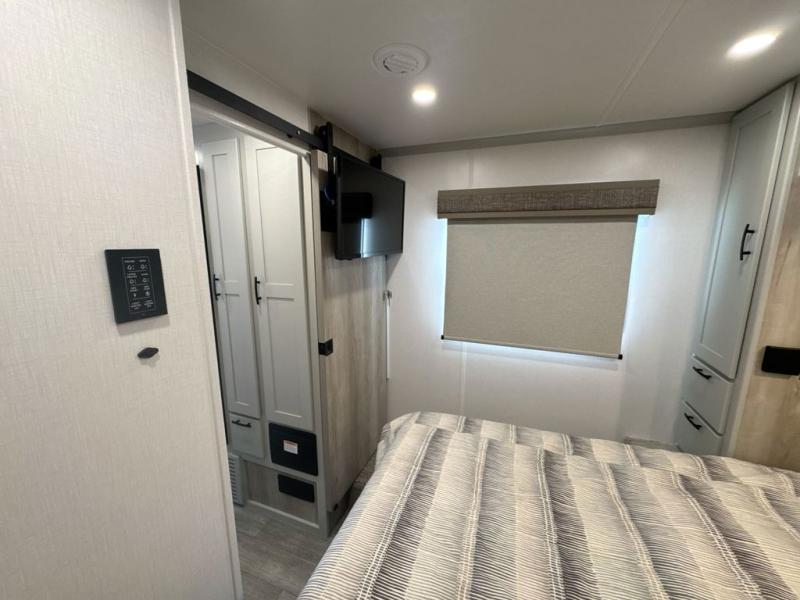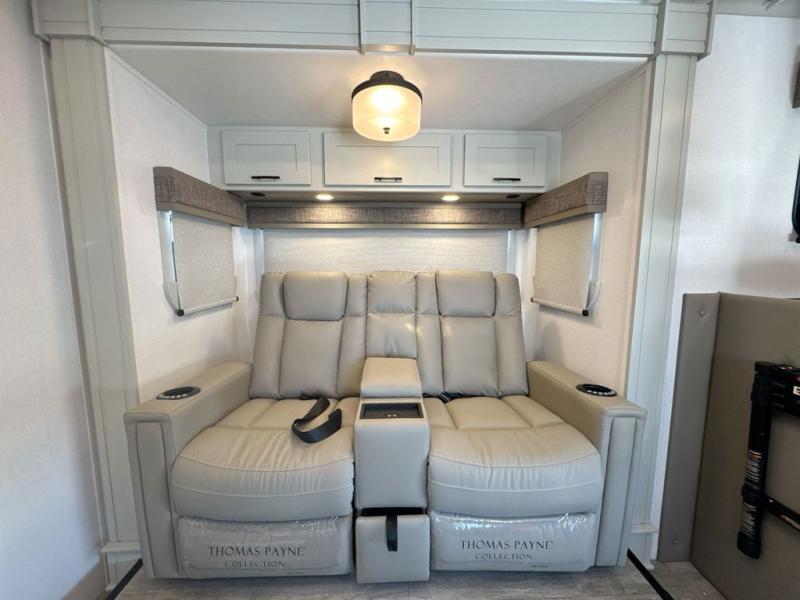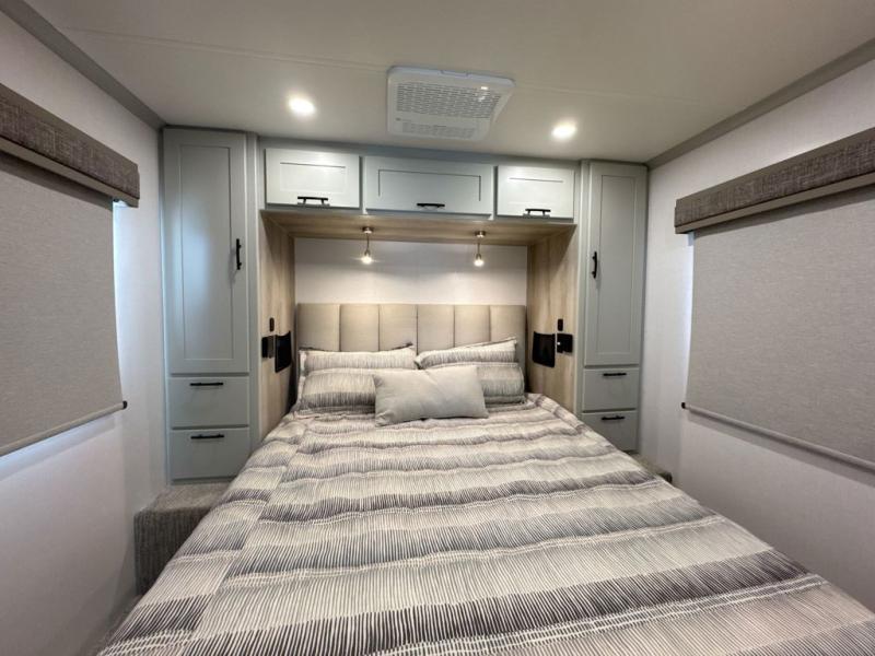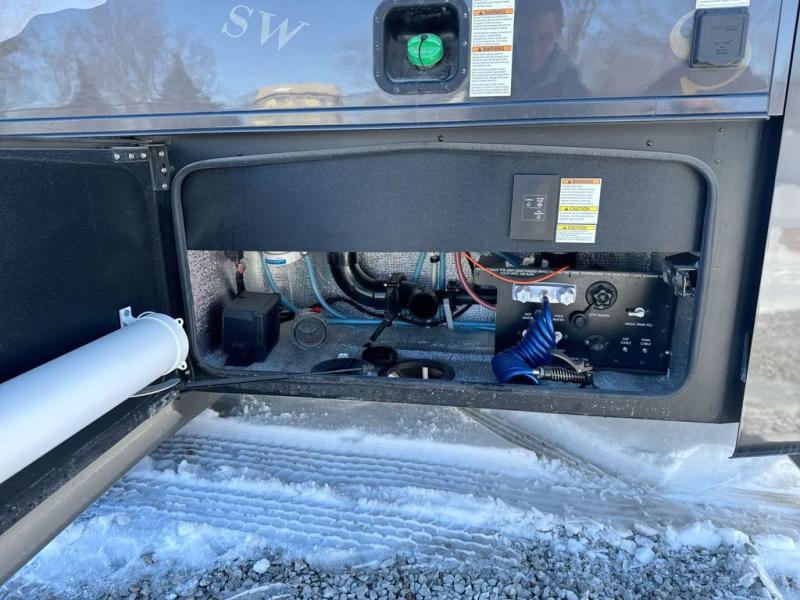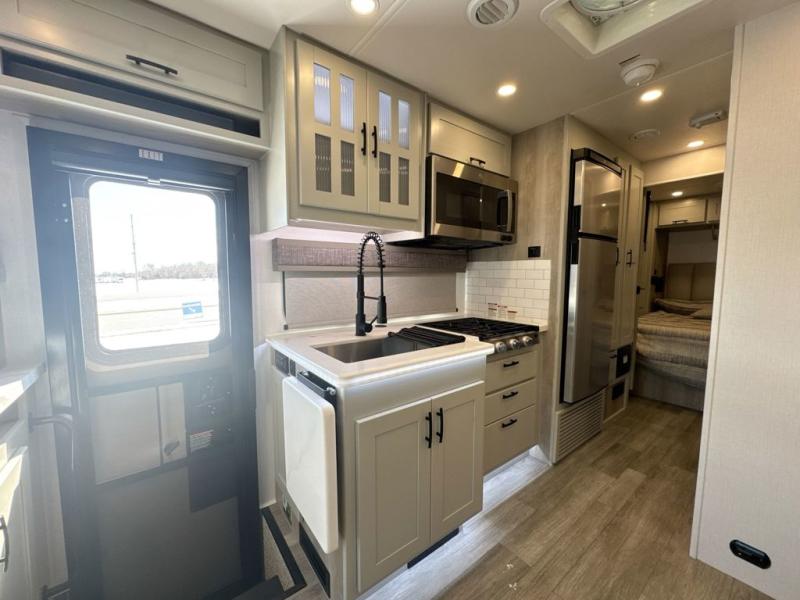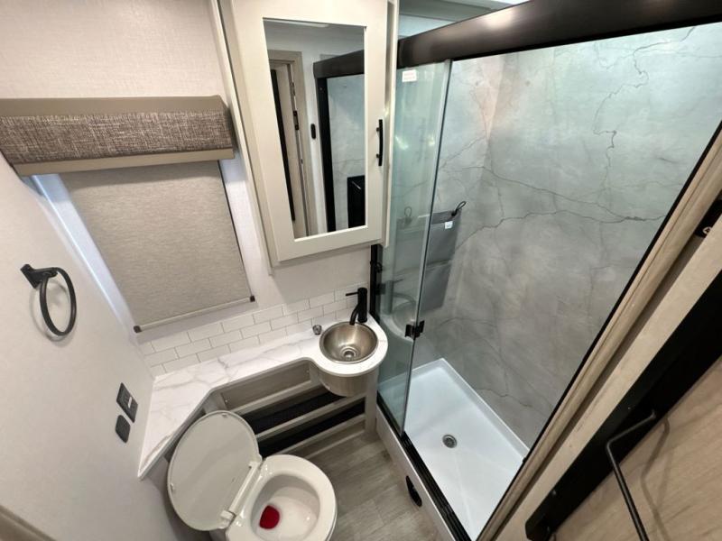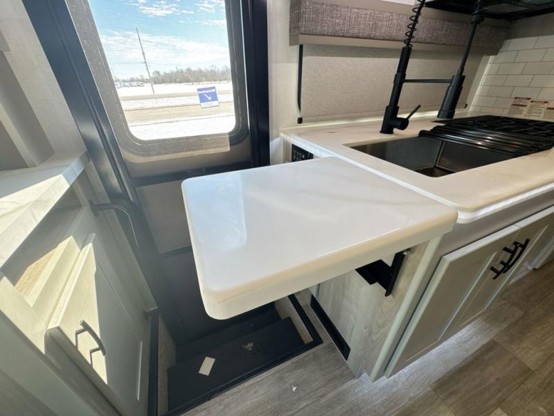 Pick a spot on the map and start traveling there in comfort with this motorhome! The rear private bedroom has a 60" x 75" gel-infused memory foam mattress for a good night's rest, LED reading lights, USB charging ports to charge your electronics while you recharge, and a 32" LED smart TV to watch movies in true comfort. The full bathroom has a designer shower with a skylight above for added head room and natural lighting and an Oxygenics body spa RV shower head for an even better showering experience on the road. The kitchen has everything you could need to prepare delicious home cooked meals including a countertop extension for more meal prepping space, and you can enjoy all of your meals at the booth dinette slide which can also transform into an extra sleeping space!