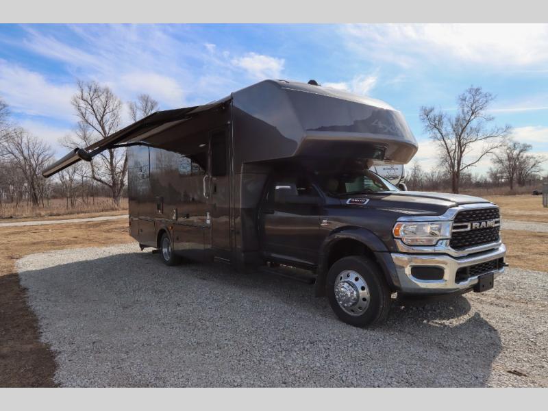 Each one of these Dynamax isata 5 Super C diesel motorhomes offer control, comfort, and stability thanks to the Ram 5500 SLT chassis with factory 4-wheel drive! They are powered by a Cummins 6.7L I6 turbo diesel engine and an AISIN HD 6-speed automatic transmission. Their construction consists of 2" aluminum-framed, laminated sidewalls with block foam insulation, composite exterior fiberglass, and a composite flooring substrate that is lightweight and moisture resistant. You will see their attention to detail everywhere you look including ambient lighting, premium cut and buffed paint finish, and a water filtration system for clean water where ever you go. They even have a single 190 watt solar panel with a 30 amp controller so you can go off the grid. Come check out your favorite model today!
