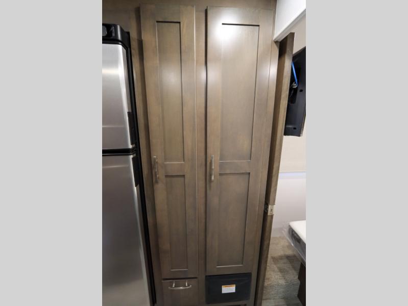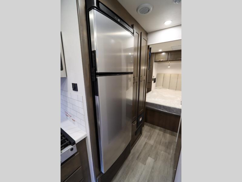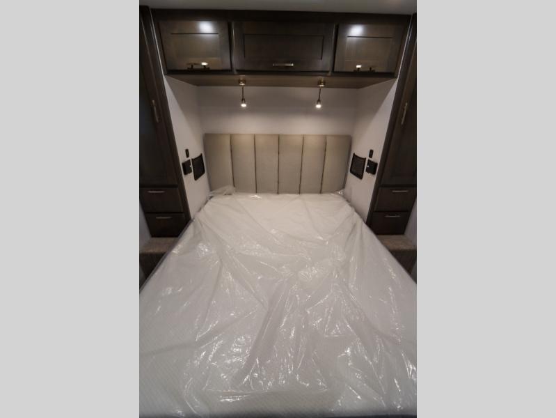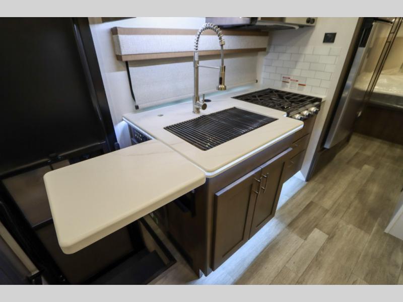 Pick a spot on the map and start traveling there in comfort with this motorhome! The rear private bedroom has a 60" x 75" gel-infused memory foam mattress for a good night's rest, LED reading lights, USB charging ports to charge your electronics while you recharge, and a 32" LED smart TV to watch movies in true comfort. The full bathroom has a designer shower with a skylight above for added head room and natural lighting and an Oxygenics body spa RV shower head for an even better showering experience on the road. The kitchen has everything you could need to prepare delicious home cooked meals including a countertop extension for more meal prepping space, and you can enjoy all of your meals at the booth dinette slide which can also transform into an extra sleeping space!