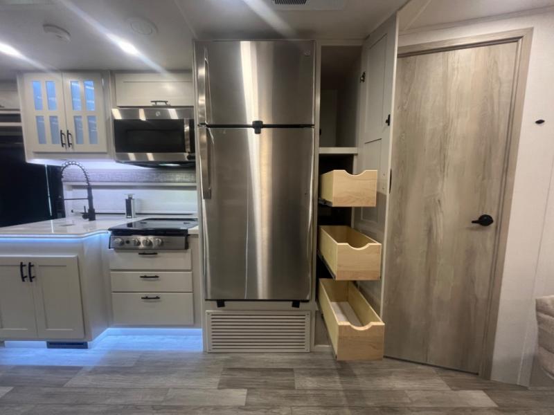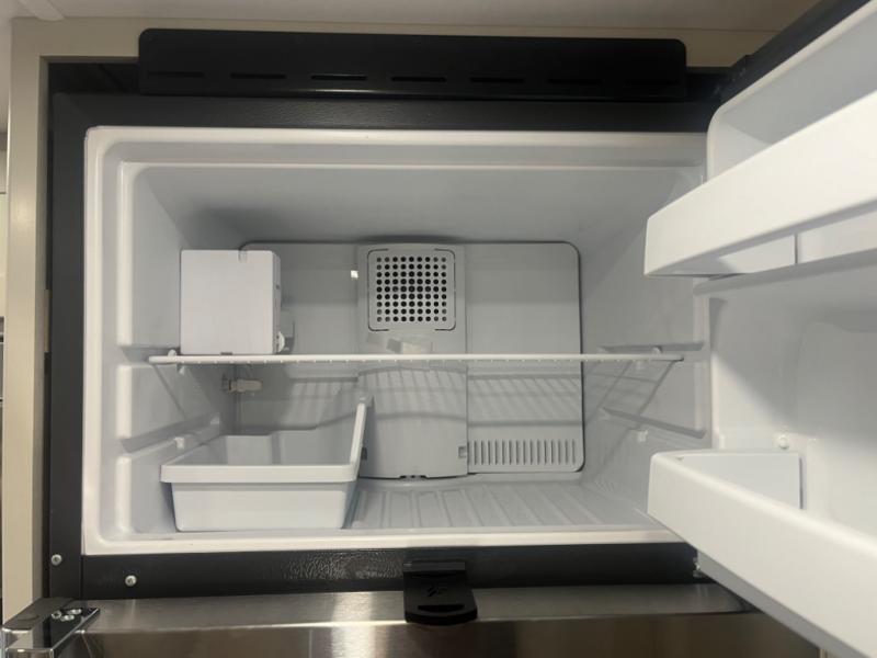 - 8 cu. ft. double-door refrigerator keeps food fresh for extended trips.