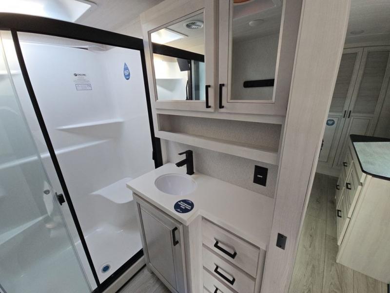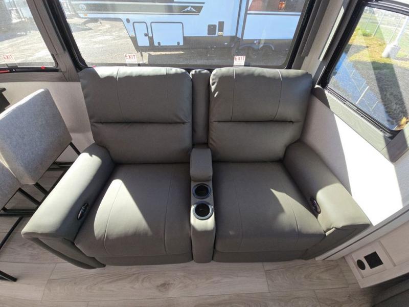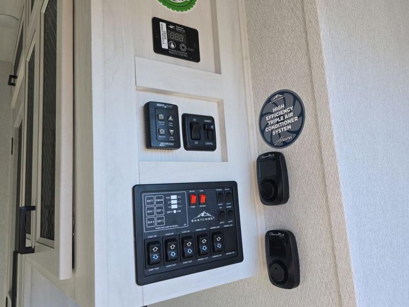 There is just too much luxury to name on the EAST TO WEST Ahara fifth wheel! These units are quite impressive, and once you see them, you'll know what we mean. The Ahara first grabs your attention with its hi-gloss gel-coated fiberglass exterior which showcases two power awnings with LED lights, an LP quick connect, an exterior cable/satellite hookup, and a universal all-in-one docking station. For towing, you'll find a MORryde CRE 3000 suspension, Dexter Gladiator thick-wall 7,000-LB axles with Nev-R-Adjust brakes, and preparations for a rearview camera. Traveling during all seasons is also made easy with the high-efficiency triple A/C system, a 40,000 BTU high-capacity furnace, a heated, insulated, and enclosed underbelly and dump valves with circulating heat, and Radiant Technology Composites insulation in the roof, front cap, and underbelly.