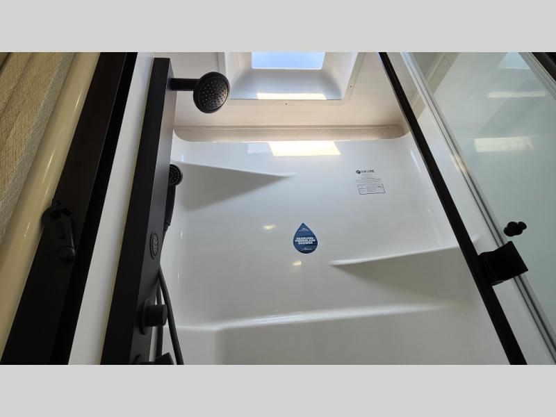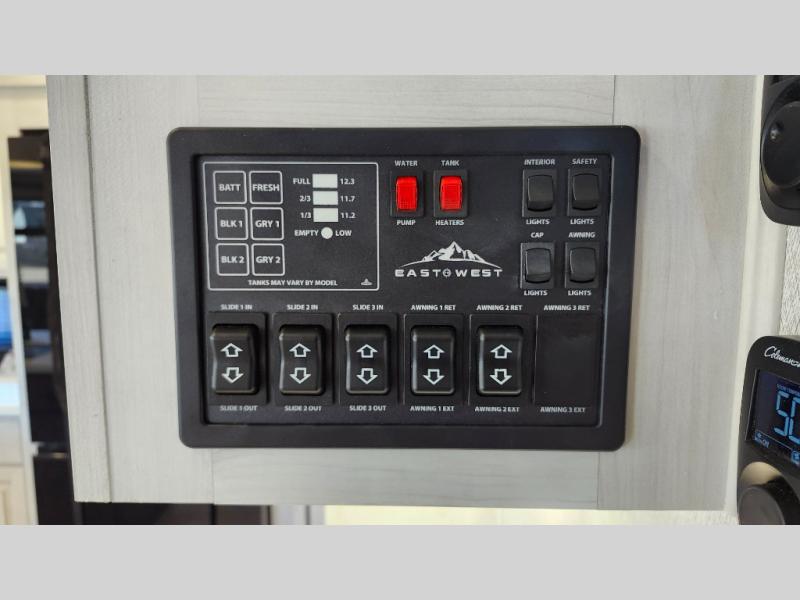 There is just too much luxury to name on the EAST TO WEST Ahara fifth wheel! These units are quite impressive, and once you see them, you'll know what we mean. The Ahara first grabs your attention with its hi-gloss gel-coated fiberglass exterior which showcases two power awnings with LED lights, an LP quick connect, an exterior cable/satellite hookup, and a universal all-in-one docking station. For towing, you'll find a MORryde CRE 3000 suspension, Dexter Gladiator thick-wall 7,000-LB axles with Nev-R-Adjust brakes, and preparations for a rearview camera. Traveling during all seasons is also made easy with the high-efficiency triple A/C system, a 40,000 BTU high-capacity furnace, a heated, insulated, and enclosed underbelly and dump valves with circulating heat, and Radiant Technology Composites insulation in the roof, front cap, and underbelly.