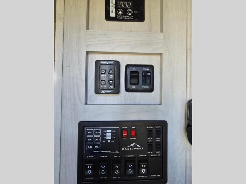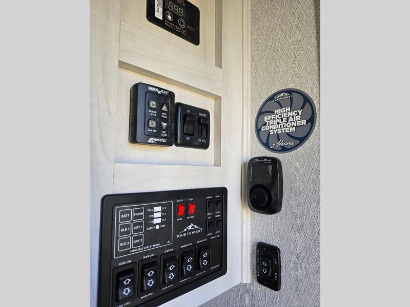 There is just too much luxury to name on the EAST TO WEST Ahara fifth wheel! These units are quite impressive, and once you see them, you'll know what we mean. The Ahara first grabs your attention with its hi-gloss gel-coated fiberglass exterior which showcases two power awnings with LED lights, an LP quick connect, an exterior cable/satellite hookup, and a universal all-in-one docking station. For towing, you'll find a MORryde CRE 3000 suspension, Dexter Gladiator thick-wall 7,000-LB axles with Nev-R-Adjust brakes, and preparations for a rearview camera. Traveling during all seasons is also made easy with the high-efficiency triple A/C system, a 40,000 BTU high-capacity furnace, a heated, insulated, and enclosed underbelly and dump valves with circulating heat, and Radiant Technology Composites insulation in the roof, front cap, and underbelly.