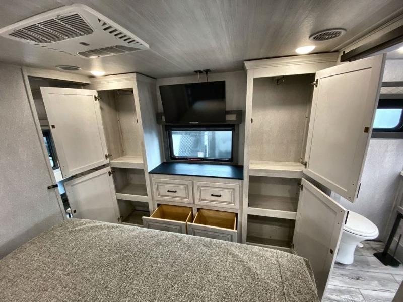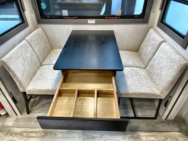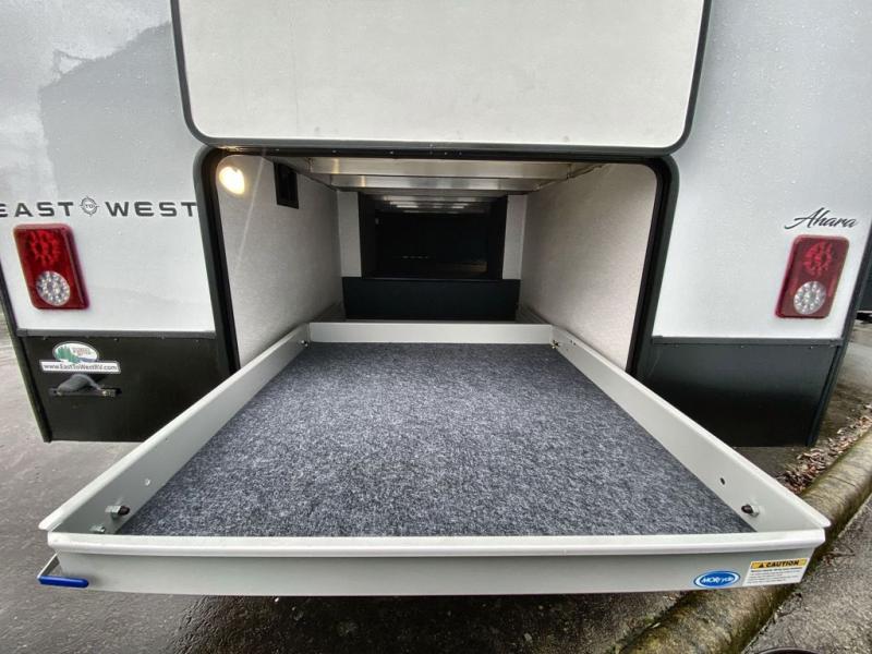 There is just too much luxury to name on the EAST TO WEST Ahara fifth wheel! These units are quite impressive, and once you see them, you'll know what we mean. The Ahara first grabs your attention with its hi-gloss gel-coated fiberglass exterior which showcases two power awnings with LED lights, an LP quick connect, an exterior cable/satellite hookup, and a universal all-in-one docking station. For towing, you'll find a MORryde CRE 3000 suspension, Dexter Gladiator thick-wall 7,000-LB axles with Nev-R-Adjust brakes, and preparations for a rearview camera. Traveling during all seasons is also made easy with the high-efficiency triple A/C system, a 40,000 BTU high-capacity furnace, a heated, insulated, and enclosed underbelly and dump valves with circulating heat, and Radiant Technology Composites insulation in the roof, front cap, and underbelly.
