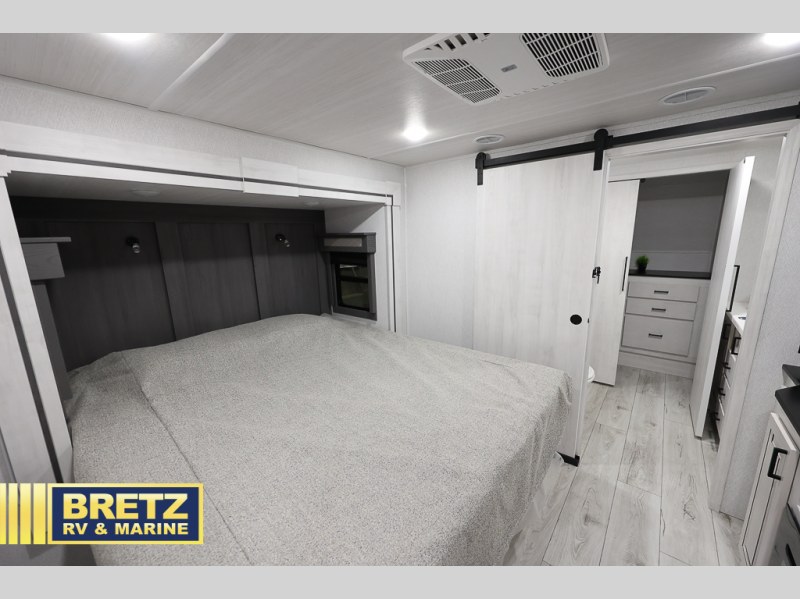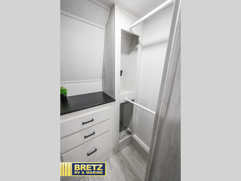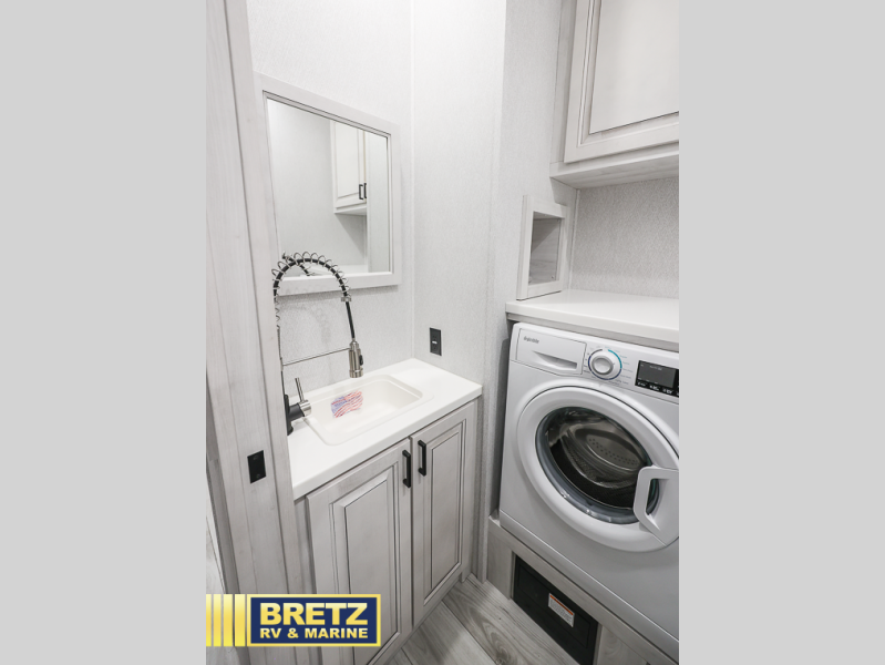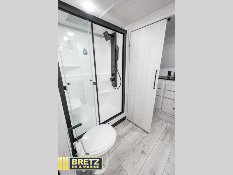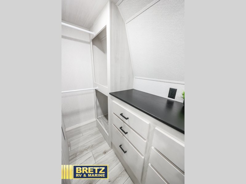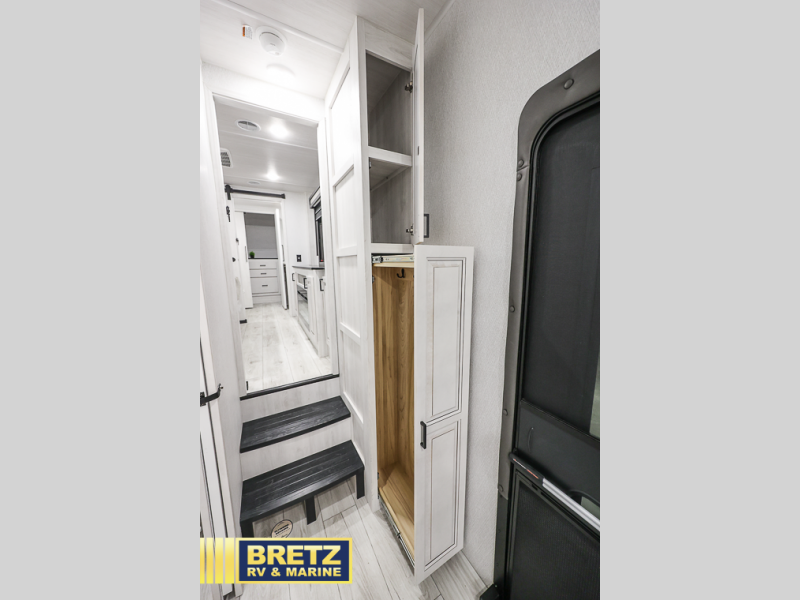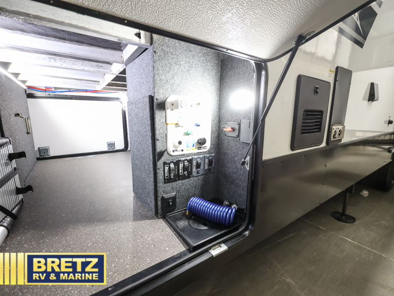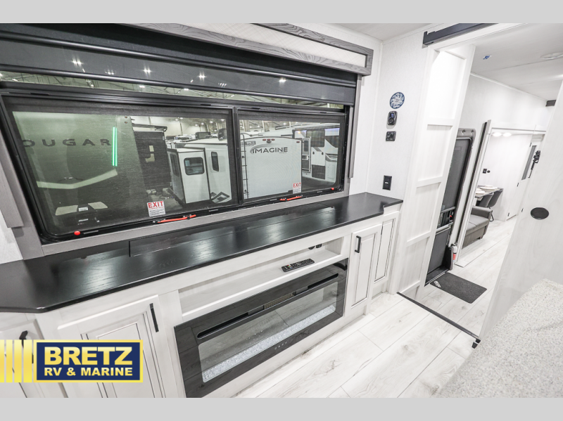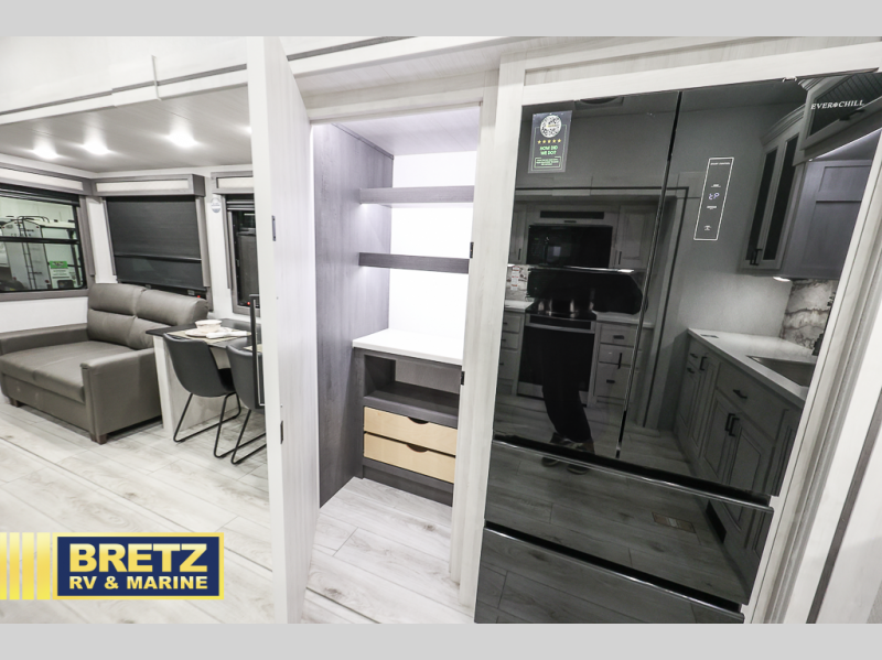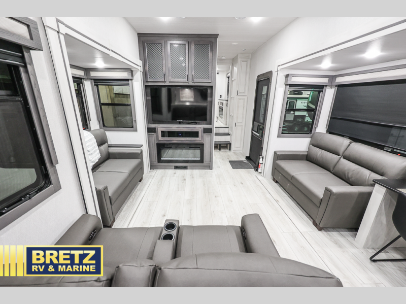 The spacious rear kitchen is, equipped with a 30” microwave, 24” residential oven, overhead cabinets, breakfast bar with bar stools, walk-in pantry, and 16 cu refrigerator, perfect for cooking all your favorite dishes with the greatest convenience The living room is the heart of the home, featuring a desk with chairs, theater seating, two 60” trifold sofas, a TV with fireplace, and more—the perfect place to relax and unwind after a long day of adventure. And when nature calls, you'll appreciate the convenient half bath with overhead cabinets. Plus, with the pull-out closet and ample storage space throughout, you'll have everything you need to stay organized and comfortable on the go. The main bedroom is a serene retreat, featuring a king bed, drawers under the bed, a TV with fireplace, and more. The perfect place to relax and recharge after a long day of adventure, and with a front full bathroom featuring a 30” x 40” shower, dual sink, walk-in closet, dresser/drawer, and more, you'll have everything you need to stay clean and comfortable on the go. Outside, you'll find not one, but two awnings - 16’ and 18’ - providing plenty of shade and protection from the elements.