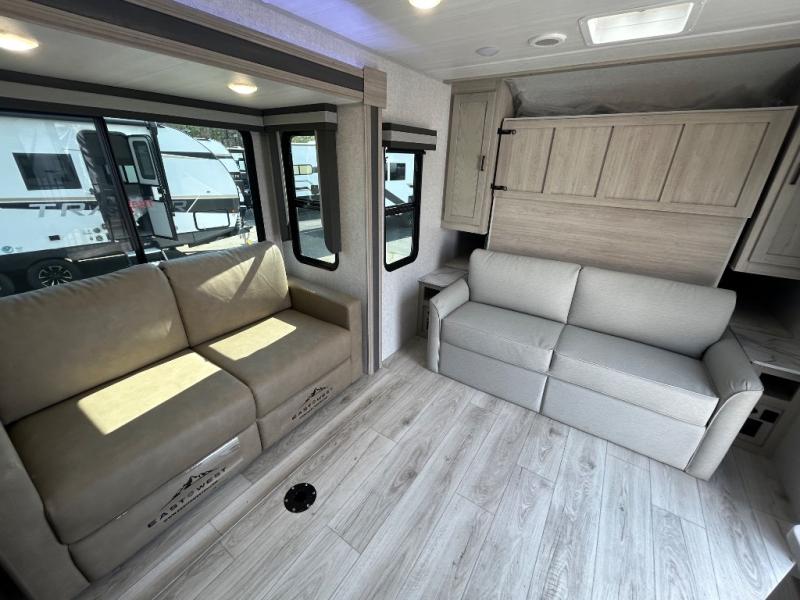 If you're looking for the perfect travel trailer for weekend getaways you've found it in this Alta model. The queen Murphy bed up front can be folded up in the morning so you can relax on the sofa, or you may just want to enjoy your coffee on the tri-fold sofa that can be optioned out for theater seats. Your meals can be prepared on the three burner cooktop or in the microwave oven, and you can dine outdoors under the 16' power awning. This model also includes a universal docking station for an all-in one location for you hookups and utilities. How convenient!
