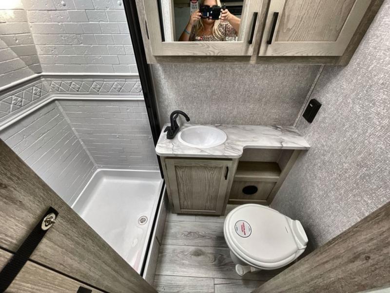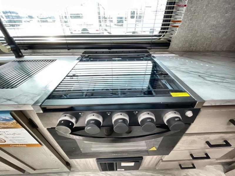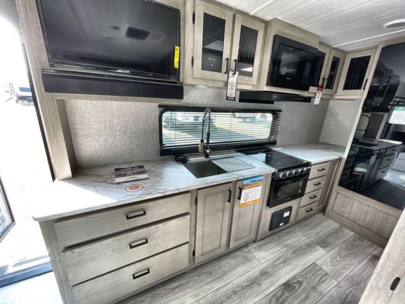 If you're looking for the perfect travel trailer for weekend getaways you've found it in this Alta model. The queen Murphy bed up front can be folded up in the morning so you can relax on the sofa, or you may just want to enjoy your coffee on the tri-fold sofa that can be optioned out for theater seats. Your meals can be prepared on the three burner cooktop or in the microwave oven, and you can dine outdoors under the 16' power awning. This model also includes a universal docking station for an all-in one location for you hookups and utilities. How convenient!