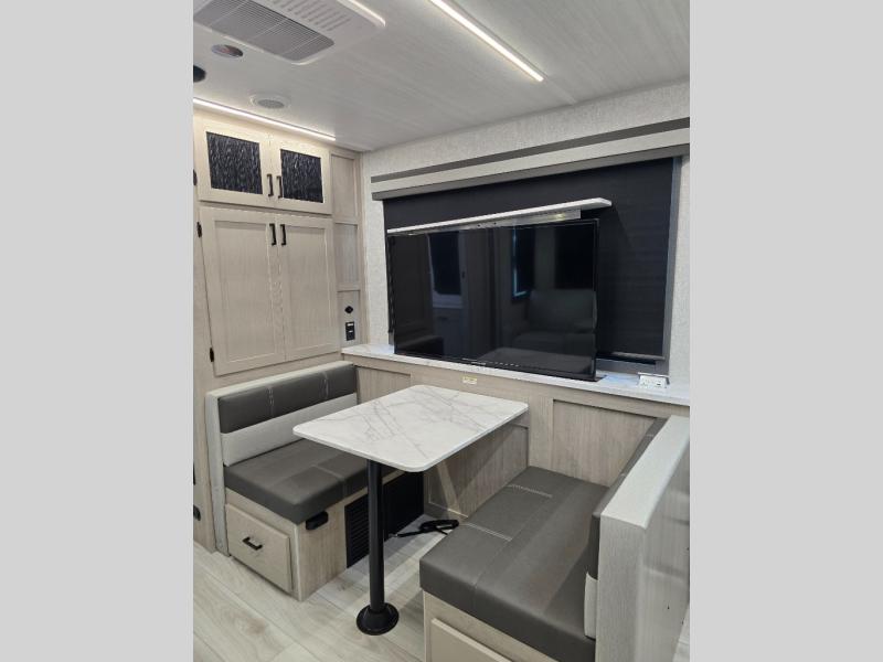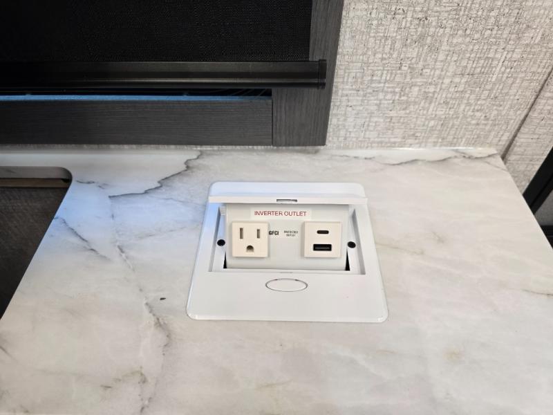 Each Alta travel trailer or toy hauler by EAST TO WEST is constructed with a 5" vacuum bonded roof, an enclosed and heated underbelly, and diamond plate front rock guard for added protection. Outside, you'll find marine-grade exterior speakers, a universal docking station, and back-up camera prep that can be added to make maneuvering in and out of campgrounds easier than ever. Inside, there are 4k interior LED lights, solid pressed membrane countertops, black roller shades, and many more interior comforts you are sure to love.