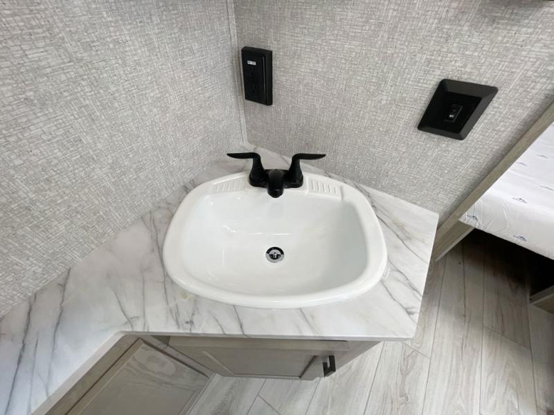 Each Alta travel trailer or toy hauler by EAST TO WEST is constructed with a 5" vacuum bonded roof, an enclosed and heated underbelly, and diamond plate front rock guard for added protection. Outside, you'll find marine-grade exterior speakers, a universal docking station, and back-up camera prep that can be added to make maneuvering in and out of campgrounds easier than ever. Inside, there are 4k interior LED lights, solid pressed membrane countertops, black roller shades, and many more interior comforts you are sure to love.