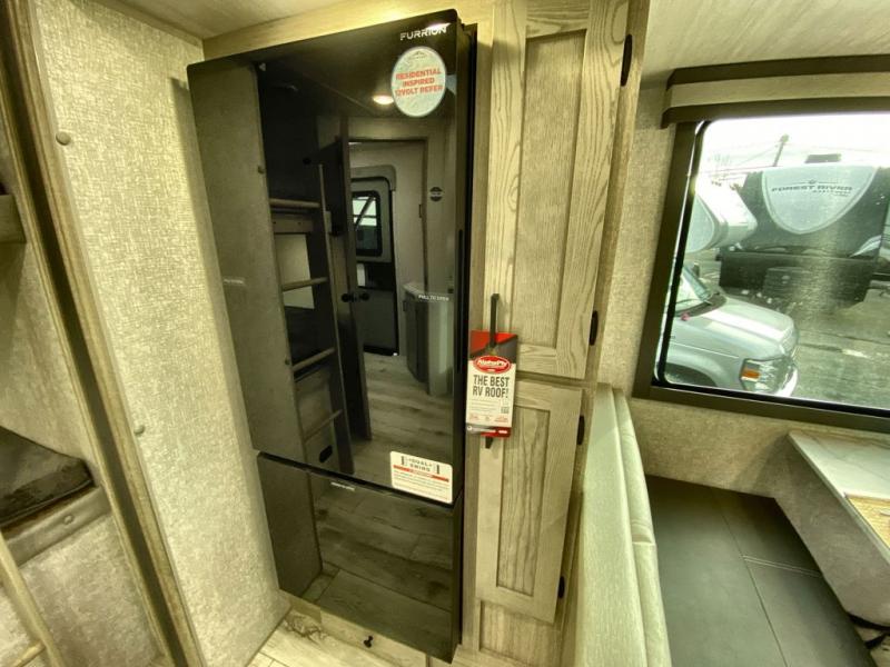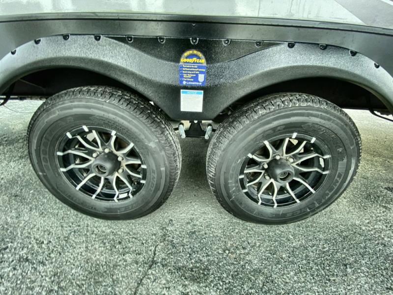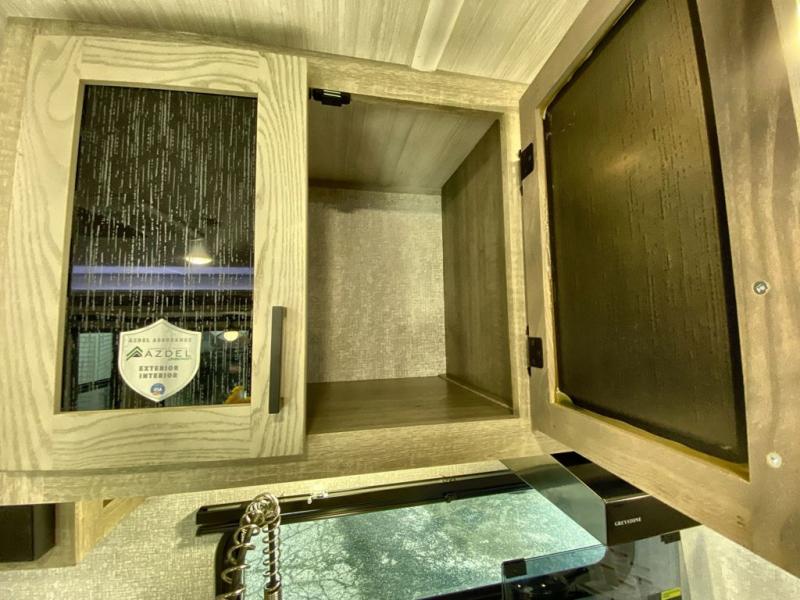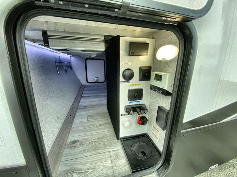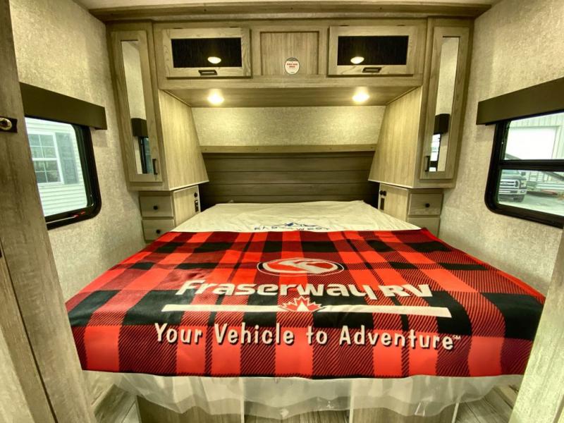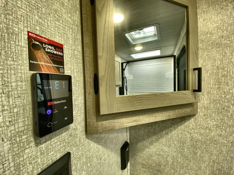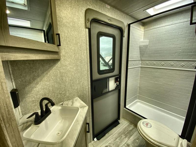 You can comfortably sleep four to six in this travel trailer thanks to the rear double bunk beds and a king bed. There is also additional storage where you will find plenty of space as well as in the overhead cabinets and dual wardrobes and night stands. The combined living area and kitchen includes a large slide for more space, and a booth dinette with an optional free-standing dinette. Great accessibility thanks to the two entry doors. In the exterior, there is also a 21´ awning and a Kayak door, especially for the adventurous ones! finally after a long day take a comfortable and relaxing shower in our full rear bathroom.