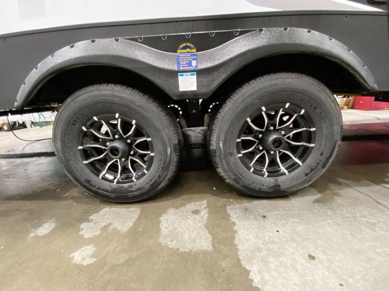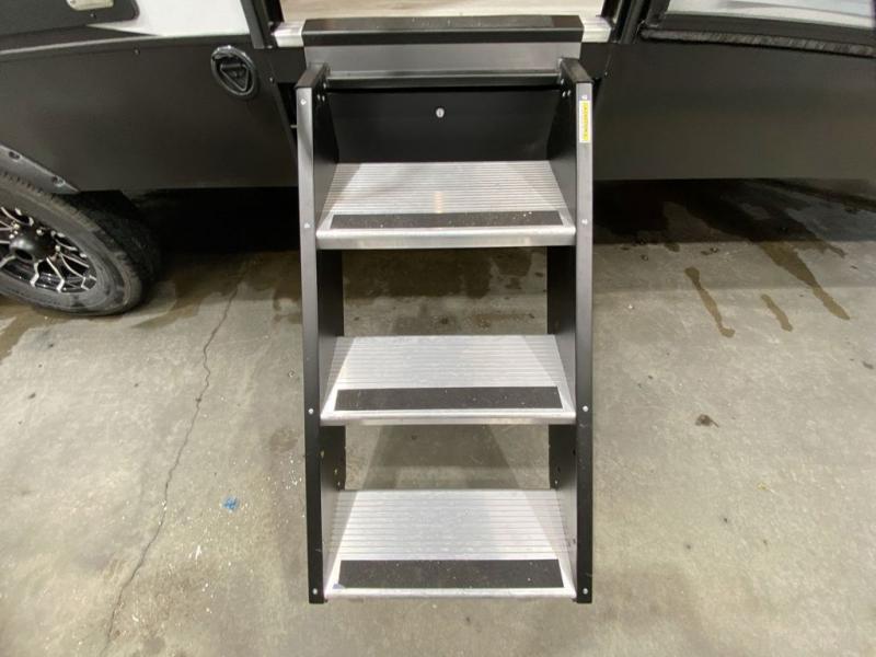 Each Alta travel trailer or toy hauler by EAST TO WEST is constructed with a 5" vacuum bonded roof, an enclosed and heated underbelly, and diamond plate front rock guard for added protection. Outside, you'll find marine-grade exterior speakers, a universal docking station, and back-up camera prep that can be added to make maneuvering in and out of campgrounds easier than ever. Inside, there are 4k interior LED lights, solid pressed membrane countertops, black roller shades, and many more interior comforts you are sure to love.