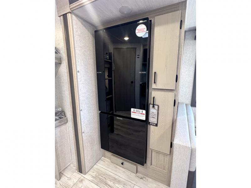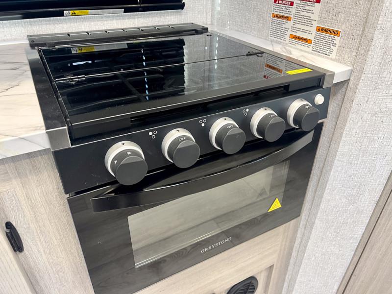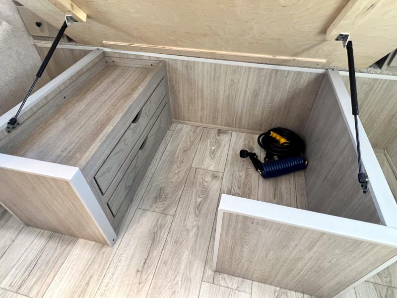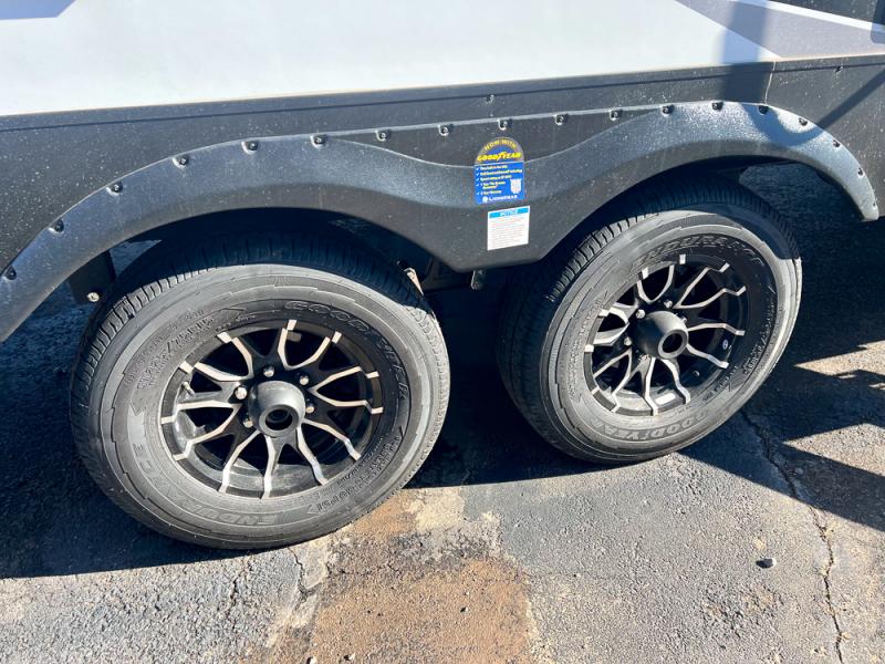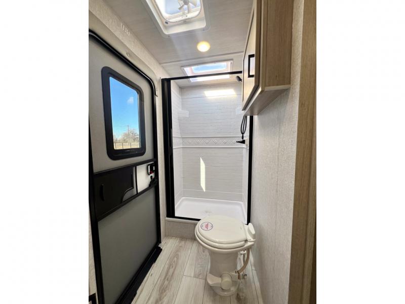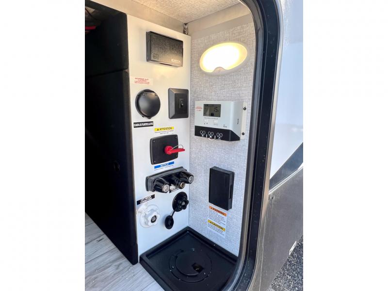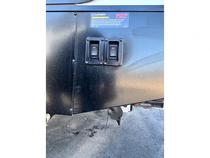 You can comfortably sleep four to six in this travel trailer thanks to the rear double bunk beds and a king bed. There is also additional storage where you will find plenty of space as well as in the overhead cabinets and dual wardrobes and night stands. The combined living area and kitchen includes a large slide for more space, and a booth dinette with an optional free-standing dinette. Great accessibility thanks to the two entry doors. In the exterior, there is also a 21´ awning and a Kayak door, especially for the adventurous ones! finally after a long day take a comfortable and relaxing shower in our full rear bathroom.