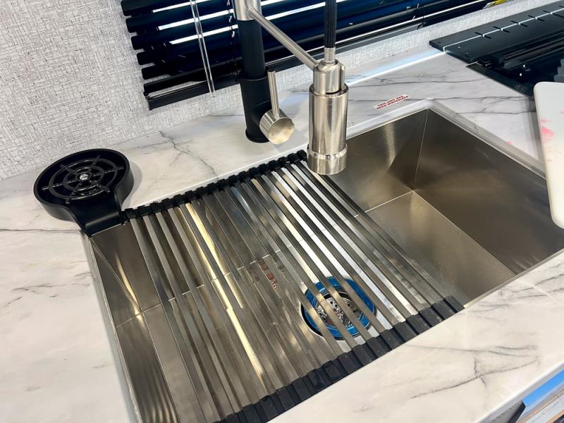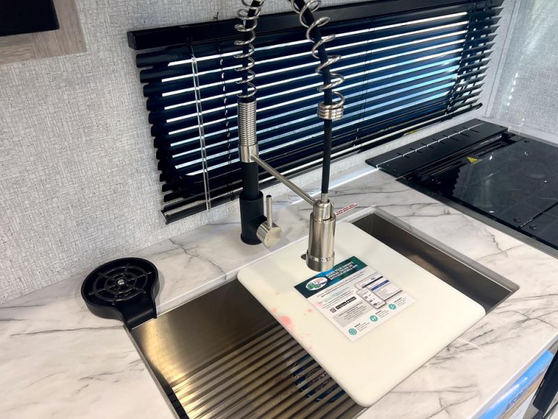 Each Alta travel trailer or toy hauler by EAST TO WEST is constructed with a 5" vacuum bonded roof, an enclosed and heated underbelly, and diamond plate front rock guard for added protection. Outside, you'll find marine-grade exterior speakers, a universal docking station, and back-up camera prep that can be added to make maneuvering in and out of campgrounds easier than ever. Inside, there are 4k interior LED lights, solid pressed membrane countertops, black roller shades, and many more interior comforts you are sure to love.