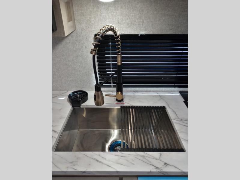 Each Alta travel trailer or toy hauler by EAST TO WEST is constructed with a 5" vacuum bonded roof, an enclosed and heated underbelly, and diamond plate front rock guard for added protection. Outside, you'll find marine-grade exterior speakers, a universal docking station, and back-up camera prep that can be added to make maneuvering in and out of campgrounds easier than ever. Inside, there are 4k interior LED lights, solid pressed membrane countertops, black roller shades, and many more interior comforts you are sure to love.