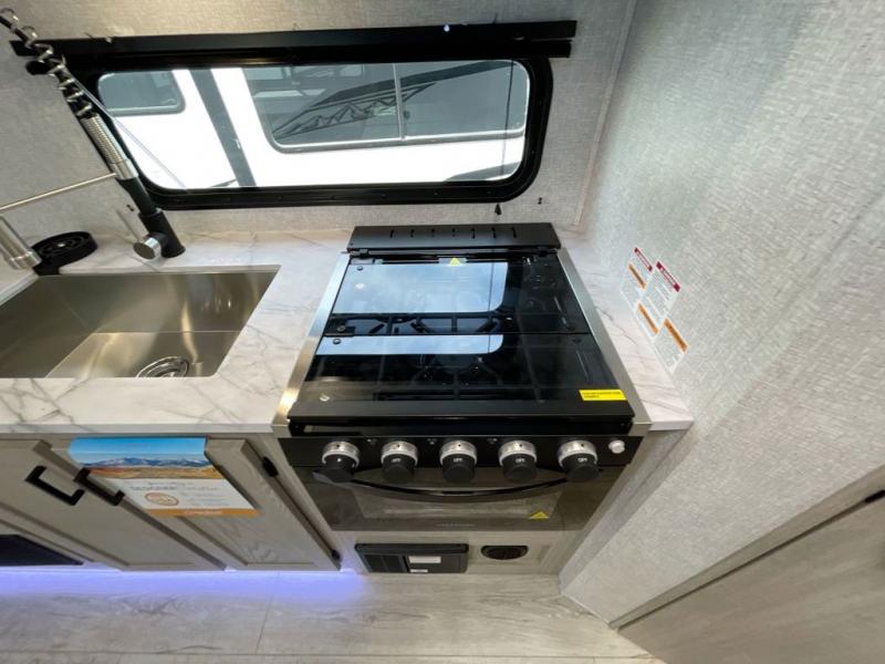 Each Alta travel trailer or toy hauler by EAST TO WEST is constructed with a 5" vacuum bonded roof, an enclosed and heated underbelly, and diamond plate front rock guard for added protection. Outside, you'll find marine-grade exterior speakers, a universal docking station, and back-up camera prep that can be added to make maneuvering in and out of campgrounds easier than ever. Inside, there are 4k interior LED lights, solid pressed membrane countertops, black roller shades, and many more interior comforts you are sure to love.