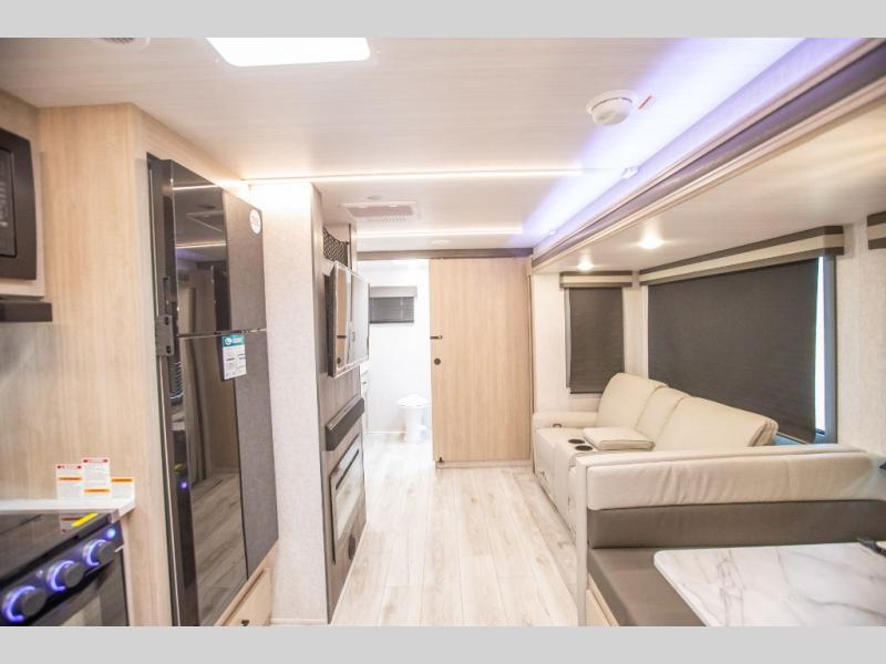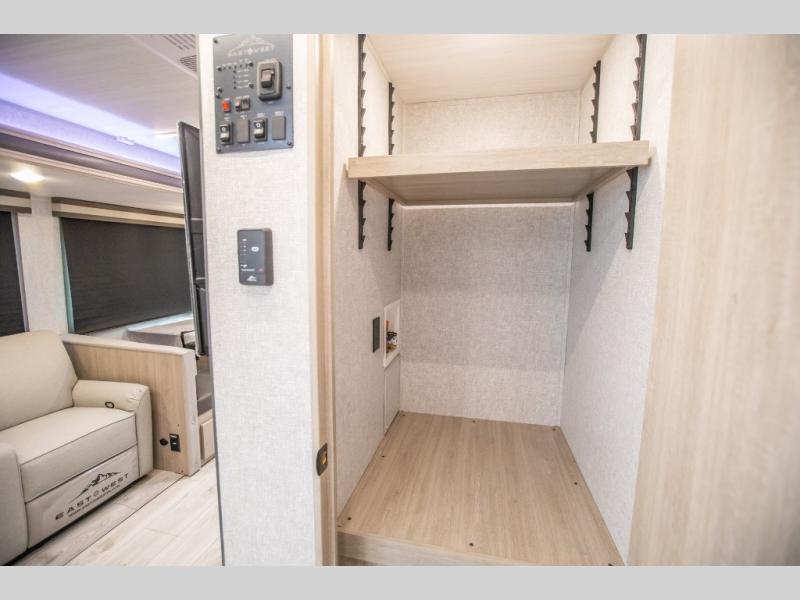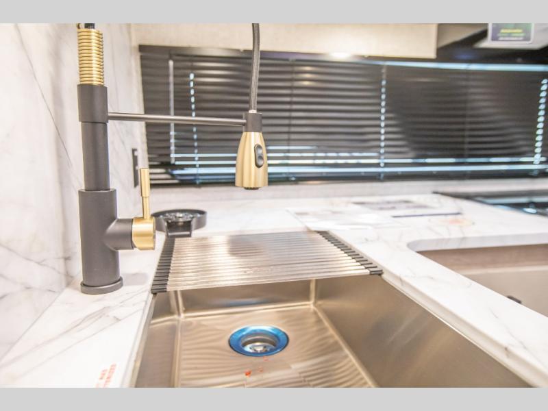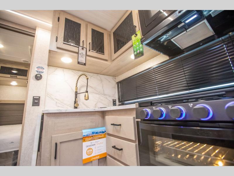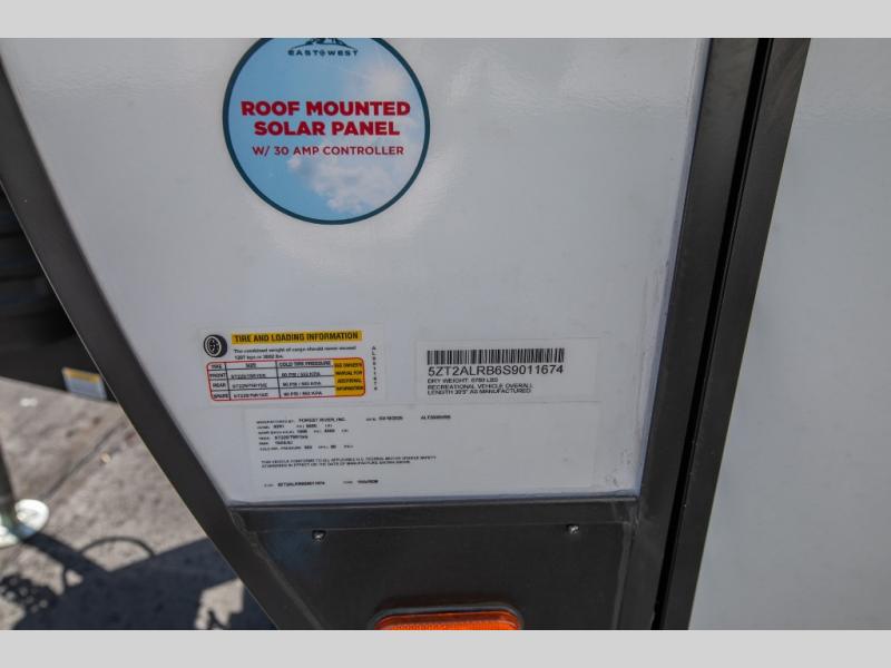 Each Alta travel trailer or toy hauler by EAST TO WEST is constructed with a 5" vacuum bonded roof, an enclosed and heated underbelly, and diamond plate front rock guard for added protection. Outside, you'll find marine-grade exterior speakers, a universal docking station, and back-up camera prep that can be added to make maneuvering in and out of campgrounds easier than ever. Inside, there are 4k interior LED lights, solid pressed membrane countertops, black roller shades, and many more interior comforts you are sure to love.