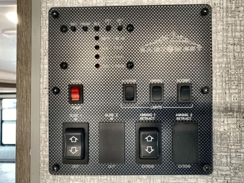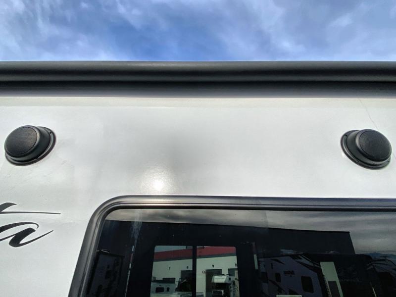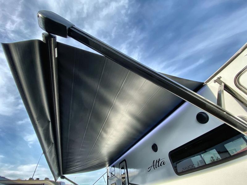 Each Alta travel trailer or toy hauler by EAST TO WEST is constructed with a 5" vacuum bonded roof, an enclosed and heated underbelly, and diamond plate front rock guard for added protection. Outside, you'll find marine-grade exterior speakers, a universal docking station, and back-up camera prep that can be added to make maneuvering in and out of campgrounds easier than ever. Inside, there are 4k interior LED lights, solid pressed membrane countertops, black roller shades, and many more interior comforts you are sure to love.