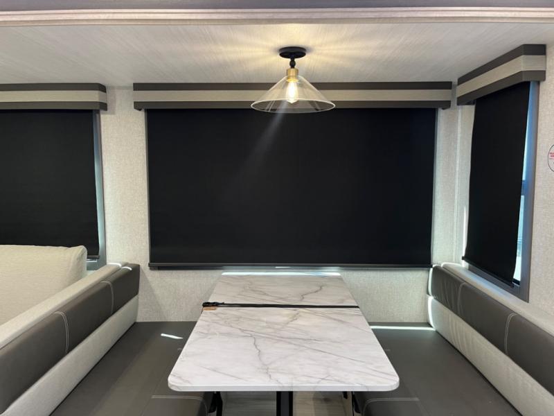 Each Alta travel trailer or toy hauler by EAST TO WEST is constructed with a 5" vacuum bonded roof, an enclosed and heated underbelly, and diamond plate front rock guard for added protection. Outside, you'll find marine-grade exterior speakers, a universal docking station, and back-up camera prep that can be added to make maneuvering in and out of campgrounds easier than ever. Inside, there are 4k interior LED lights, solid pressed membrane countertops, black roller shades, and many more interior comforts you are sure to love.