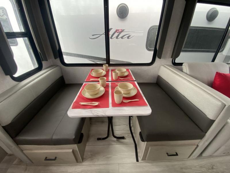 Each Alta travel trailer or toy hauler by EAST TO WEST is constructed with a 5" vacuum bonded roof, an enclosed and heated underbelly, and diamond plate front rock guard for added protection. Outside, you'll find marine-grade exterior speakers, a universal docking station, and back-up camera prep that can be added to make maneuvering in and out of campgrounds easier than ever. Inside, there are 4k interior LED lights, solid pressed membrane countertops, black roller shades, and many more interior comforts you are sure to love.