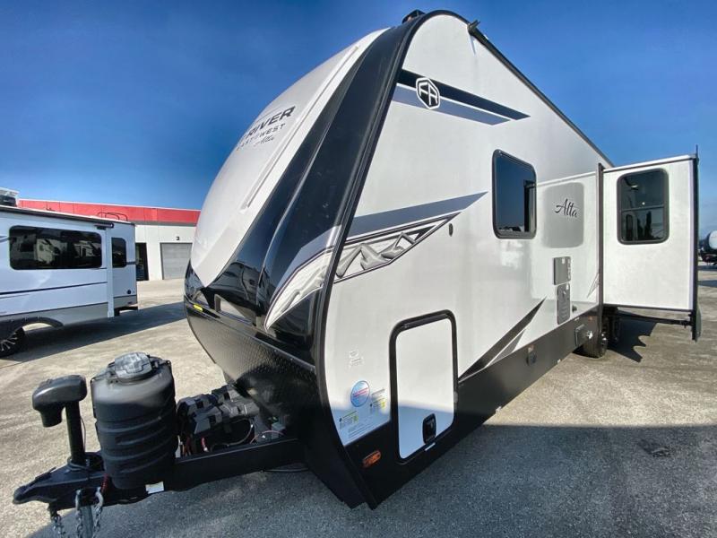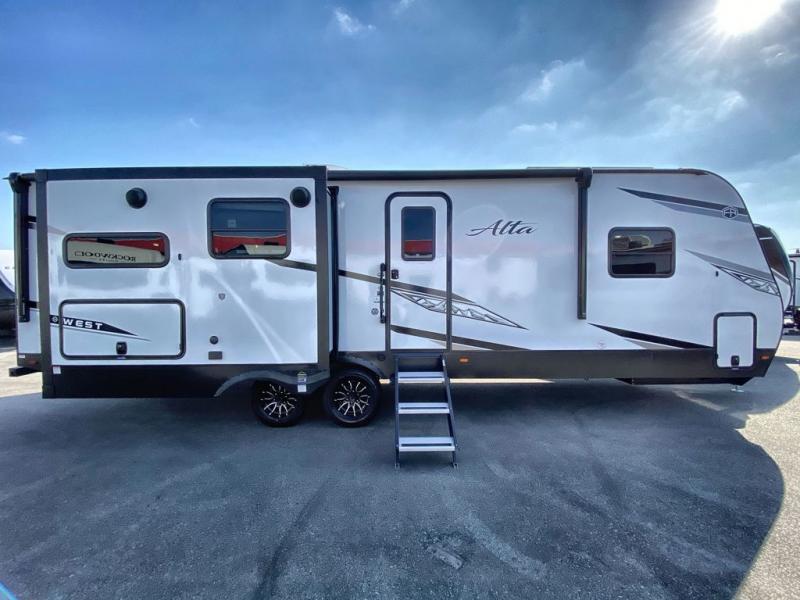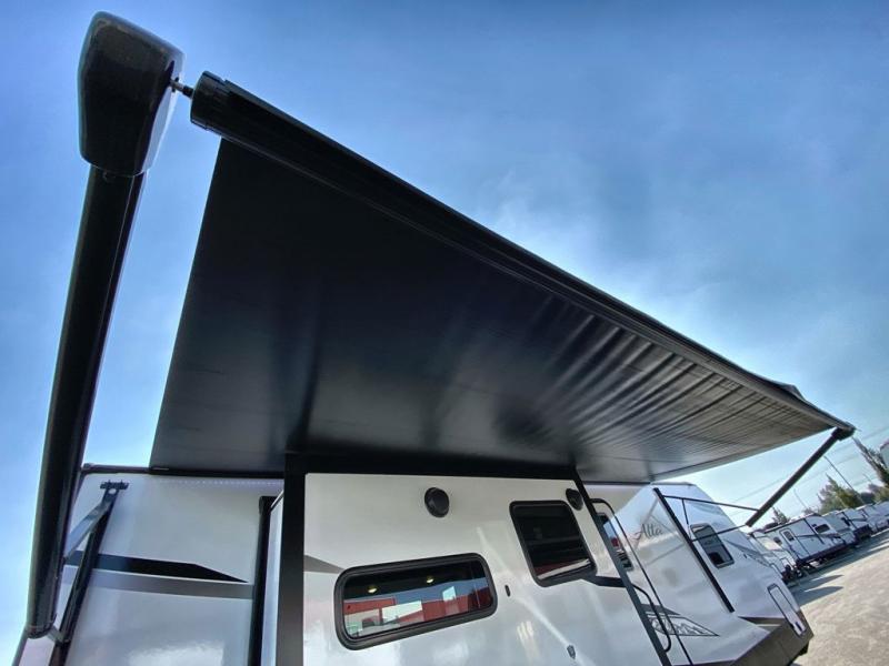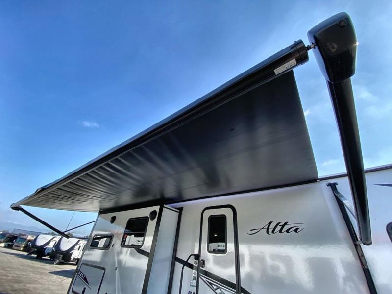 Each Alta travel trailer or toy hauler by EAST TO WEST is constructed with a 5" vacuum bonded roof, an enclosed and heated underbelly, and diamond plate front rock guard for added protection. Outside, you'll find marine-grade exterior speakers, a universal docking station, and back-up camera prep that can be added to make maneuvering in and out of campgrounds easier than ever. Inside, there are 4k interior LED lights, solid pressed membrane countertops, black roller shades, and many more interior comforts you are sure to love.