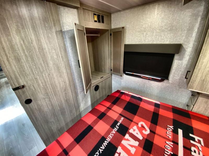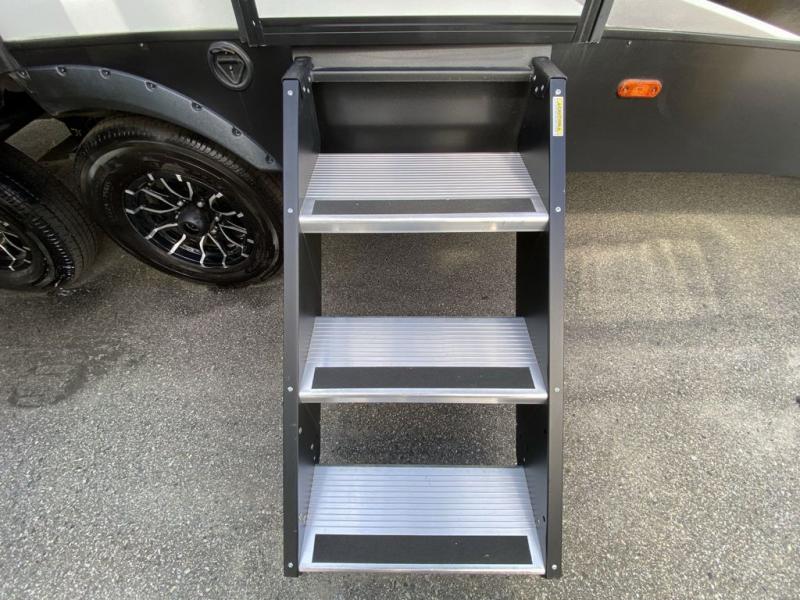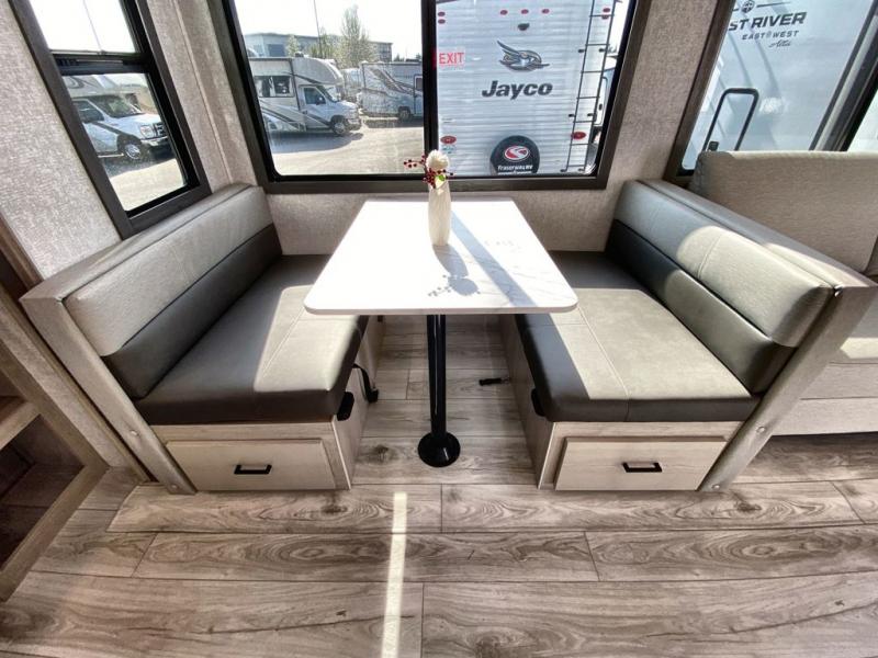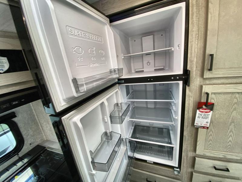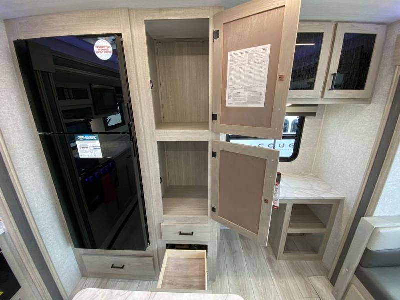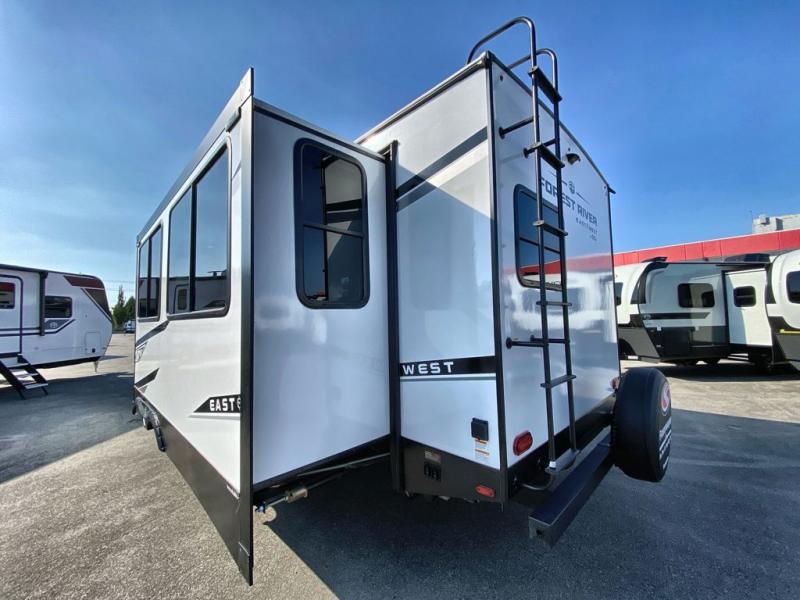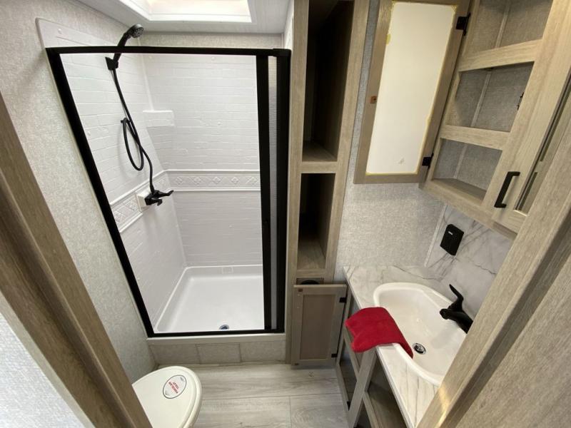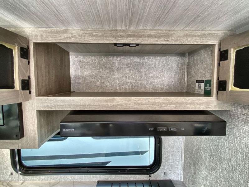 How does a king bed, a kitchen island, and an outdoor kitchen sound? You'll get all that and more in this spacious travel trailer. The dual opposing slides opens up the whole trailer, and the desk in the back will allow you to work while you're away from home. A three burner cooktop and microwave oven comes standard indoors, along with plenty of counter space and a pantry for snacks. Head outdoors to find the outside kitchen under the 21' power awning with LED lights, and when you're ready for bed the king bed will be waiting for you!