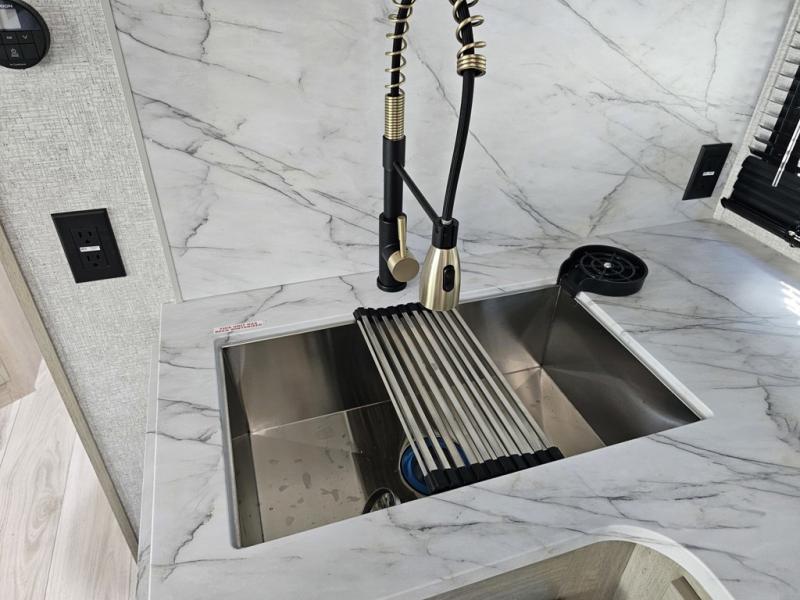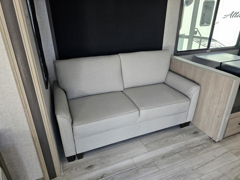 Each Alta travel trailer or toy hauler by EAST TO WEST is constructed with a 5" vacuum bonded roof, an enclosed and heated underbelly, and diamond plate front rock guard for added protection. Outside, you'll find marine-grade exterior speakers, a universal docking station, and back-up camera prep that can be added to make maneuvering in and out of campgrounds easier than ever. Inside, there are 4k interior LED lights, solid pressed membrane countertops, black roller shades, and many more interior comforts you are sure to love.