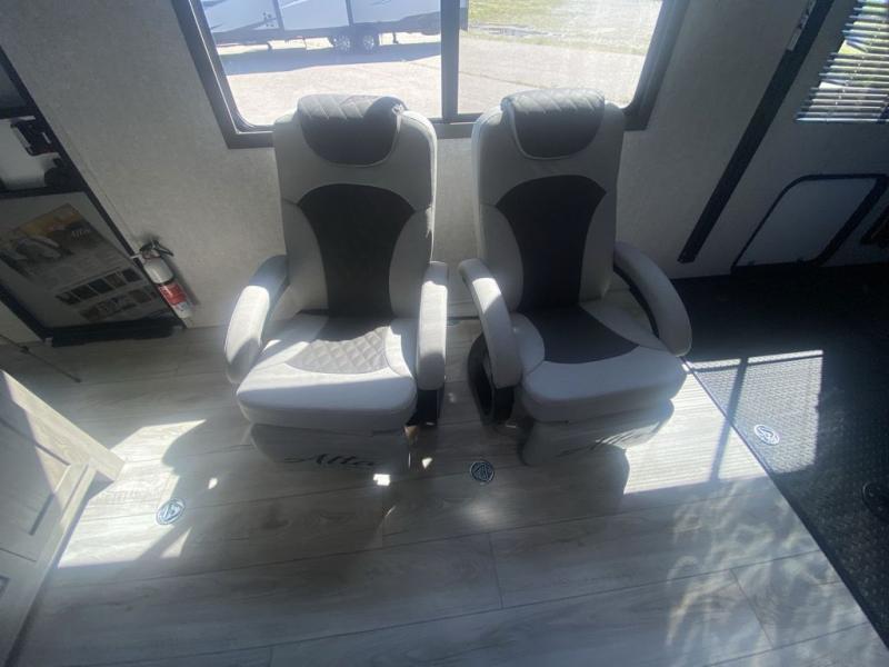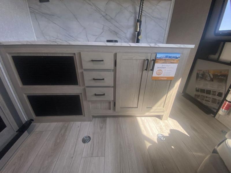 Each Alta travel trailer or toy hauler by EAST TO WEST is constructed with a 5" vacuum bonded roof, an enclosed and heated underbelly, and diamond plate front rock guard for added protection. Outside, you'll find marine-grade exterior speakers, a universal docking station, and back-up camera prep that can be added to make maneuvering in and out of campgrounds easier than ever. Inside, there are 4k interior LED lights, solid pressed membrane countertops, black roller shades, and many more interior comforts you are sure to love.