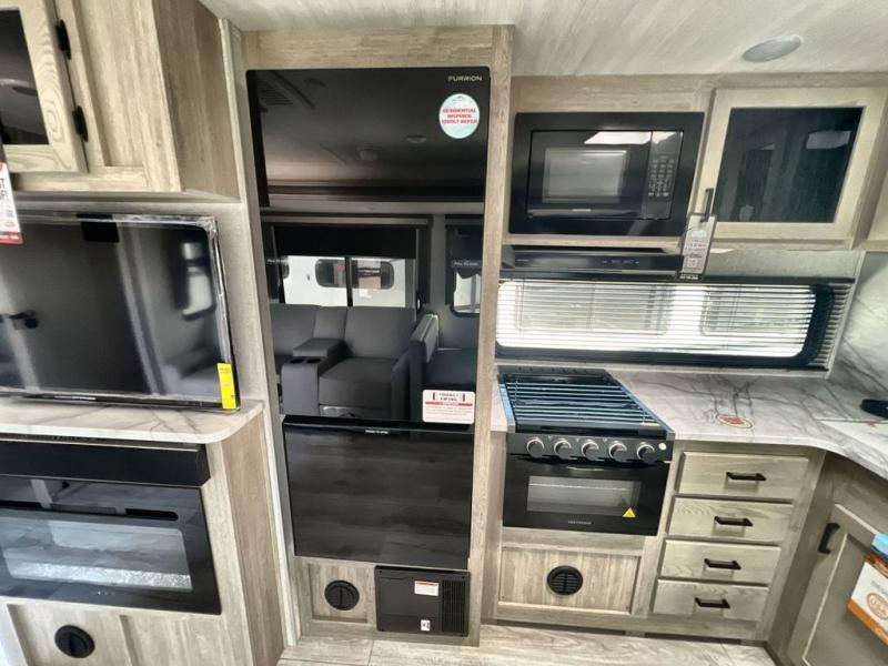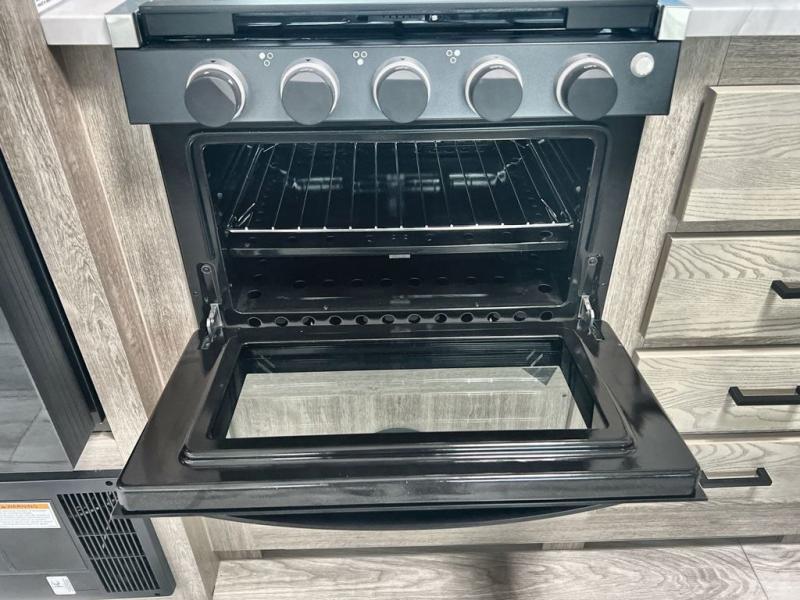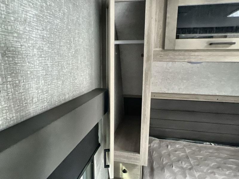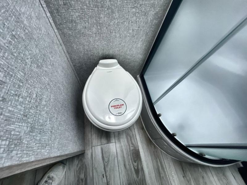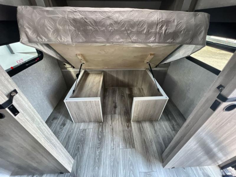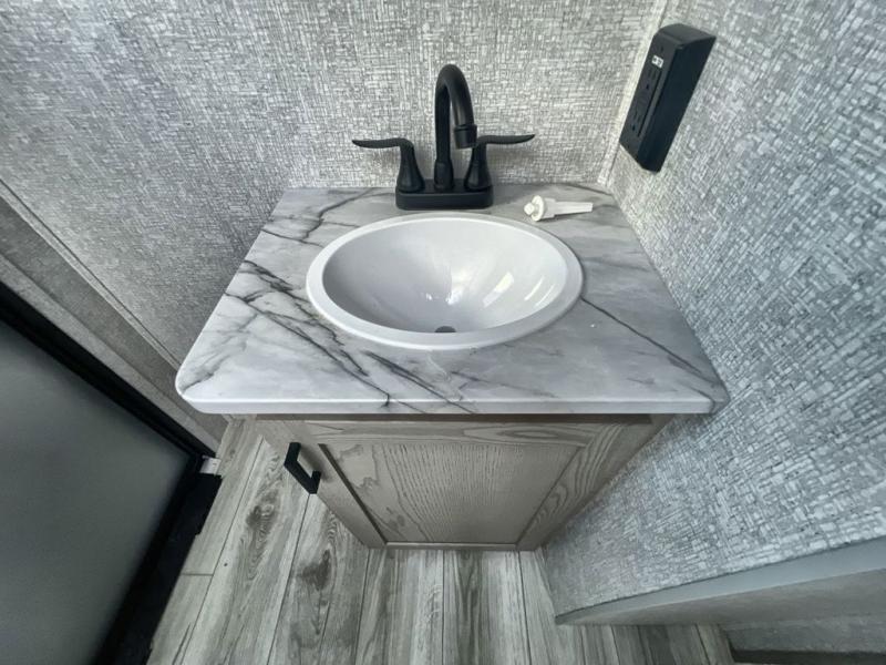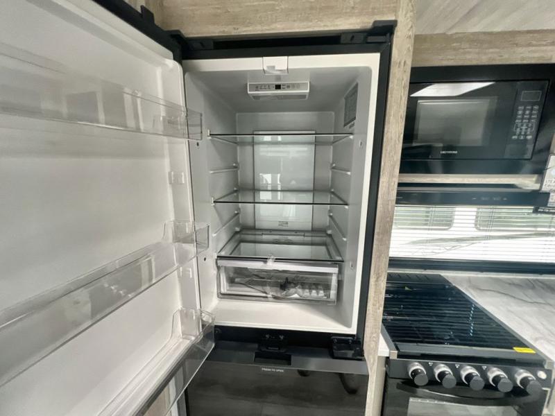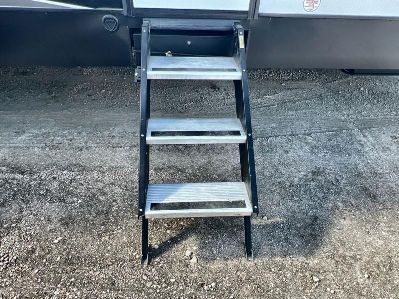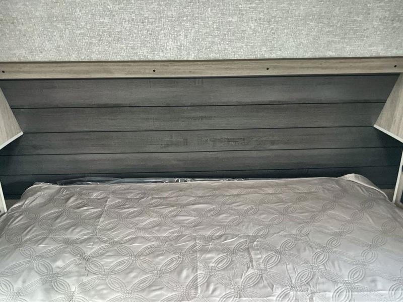 If you're looking for a travel trailer to take tailgating, this Alta model is the one! After you've unloaded the pass-through storage and set up the 21' power awning, start lunch on the outside kitchen! Since there are dual entry doors you can enter in through the main living area, or the full bath for convenience. The little ones are sure to spend most of their time in the rear bunkhouse that includes a flip-up bunk under the sofa, plus a second bunk across the room. The adults can visit at the booth dinette or on the tri-fold sofa, and check out the front private bedroom with sliding doors and a king bed for all-around comfort!