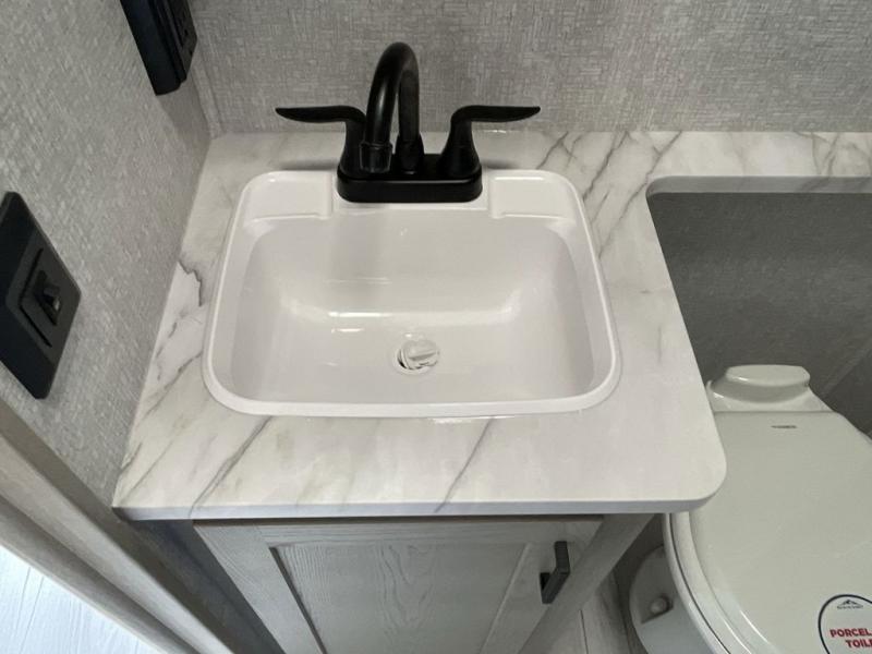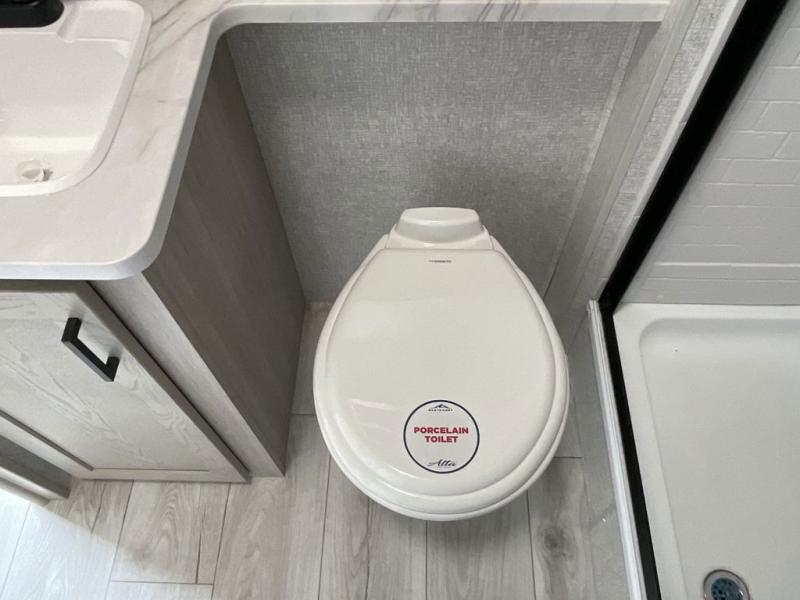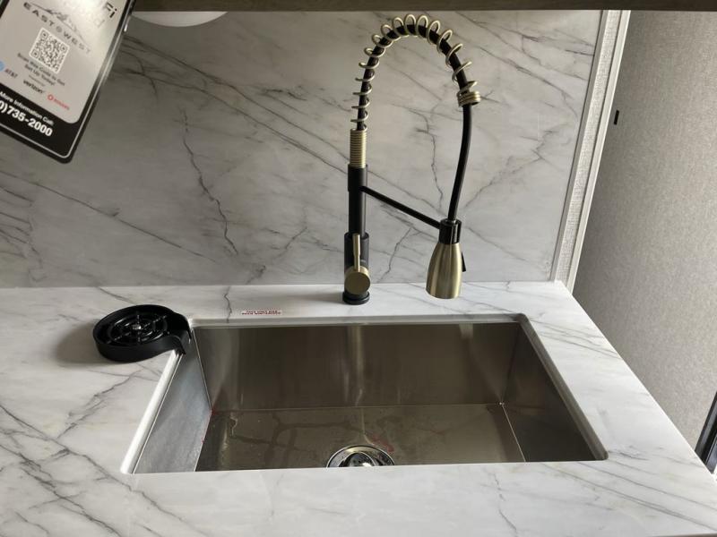 Each Alta travel trailer or toy hauler by EAST TO WEST is constructed with a 5" vacuum bonded roof, an enclosed and heated underbelly, and diamond plate front rock guard for added protection. Outside, you'll find marine-grade exterior speakers, a universal docking station, and back-up camera prep that can be added to make maneuvering in and out of campgrounds easier than ever. Inside, there are 4k interior LED lights, solid pressed membrane countertops, black roller shades, and many more interior comforts you are sure to love.