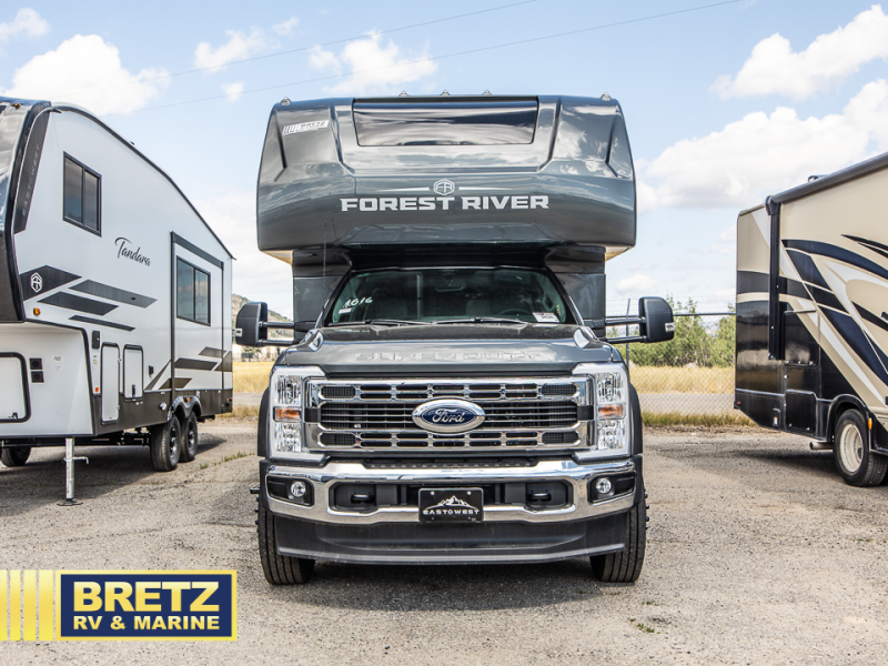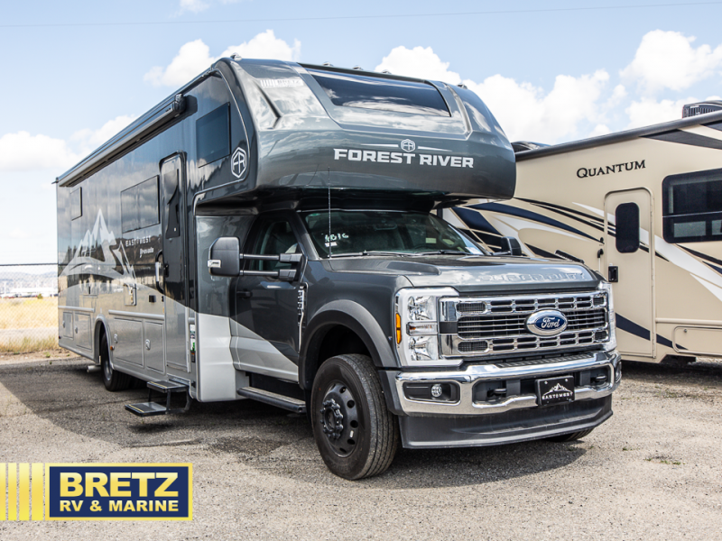 The Bravado Super C diesel motorhome by EAST TO WEST is packed with amenities that will let you travel boldly and confidently. There is a Ford F600 4x4 chassis, 6.7L PowerStroke V8 engine, and 10 speed SelectShift automatic transmission for the ultimate driving experience. You'll stay comfortable with the 15K main A/C and 13.5K second A/C, plus there is an 8K Cummins Onan generator to meet your power needs. The interior comforts are endless and the exterior conveniences will make life on the road hassle-free. Choose the Bravado today and you won't be disappointed!