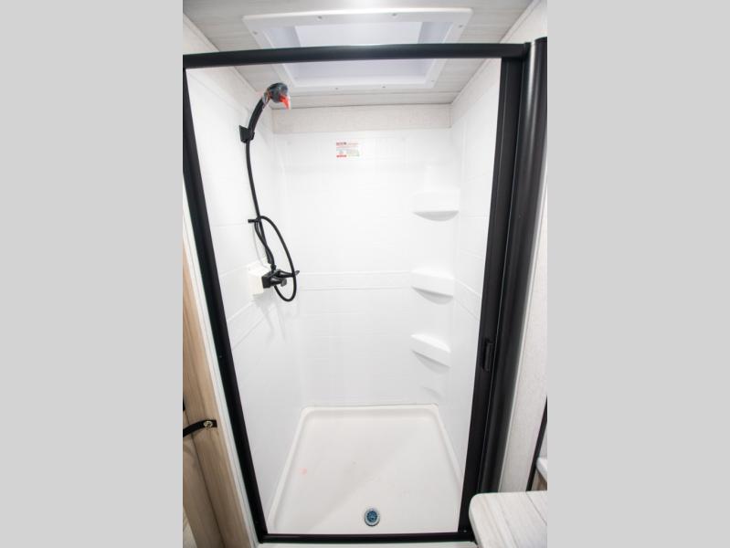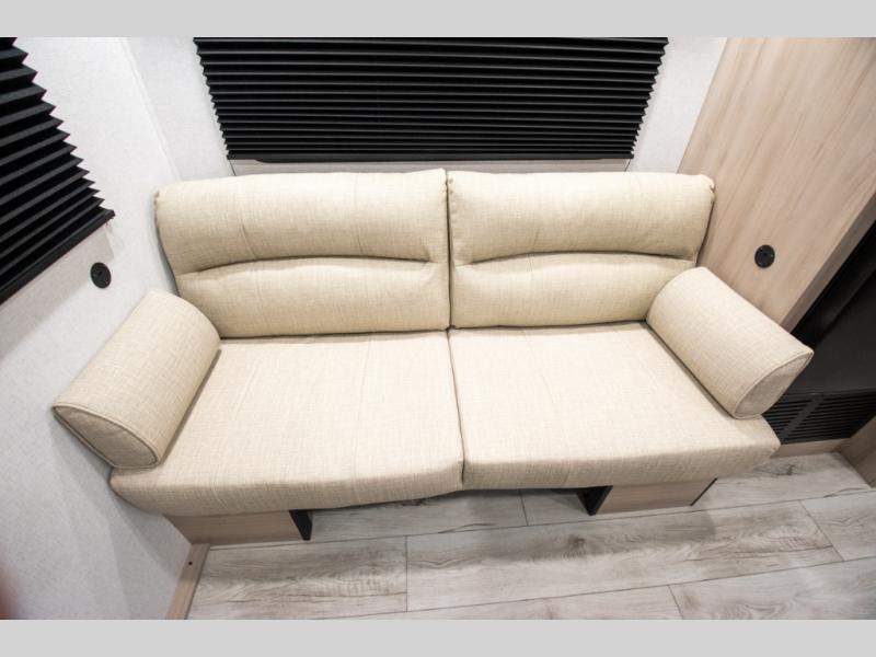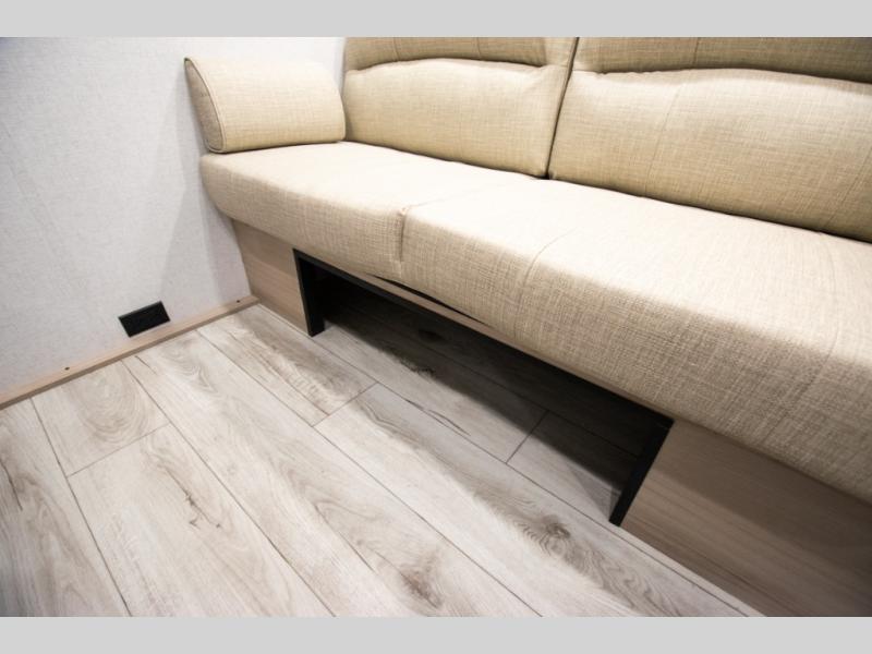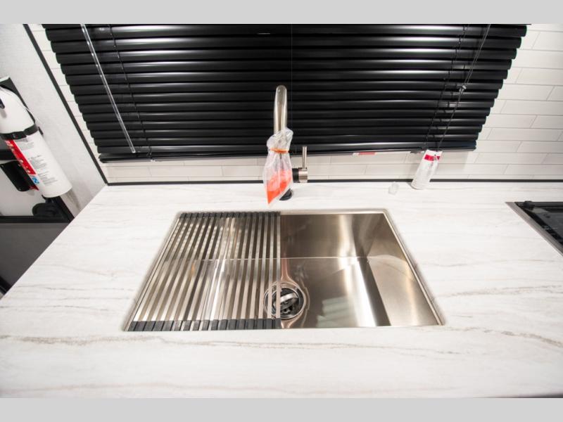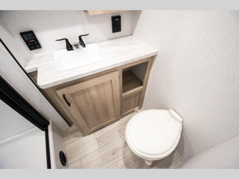 Each Della Terra travel trailer by EAST TO WEST is constructed with an enclosed and heated underbelly and enclosed holding tanks so you can camp all year long. There is also a power tongue jack with an LED light for easy set up and a power awning with LED lights you can rest under after you've unpacked. The Explore Comfort Package comes seamless pressed countertops, kitchen backsplash, window valance package with black night shades, and many more comforts. You will also appreciate the Adventure Outdoor Package with backup camera prep and solar prep, a tankless water heater, an RV grill quick disconnect, and a universal docking station with battery disconnect.