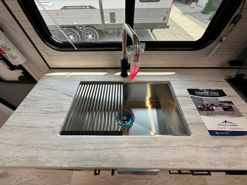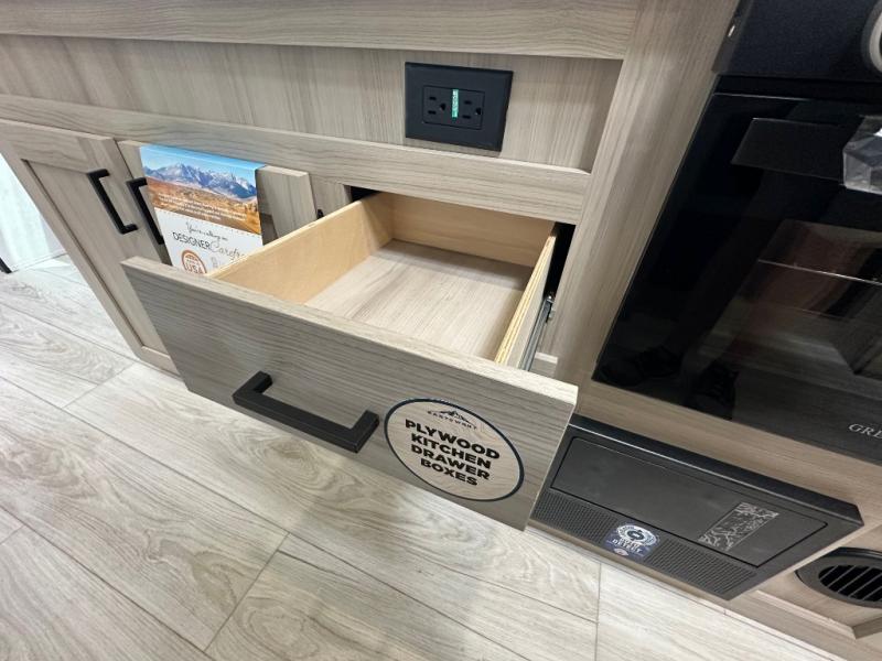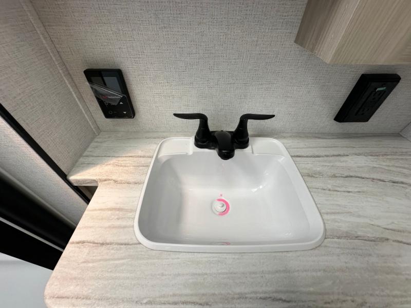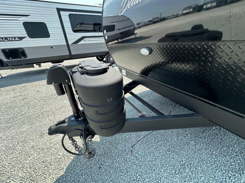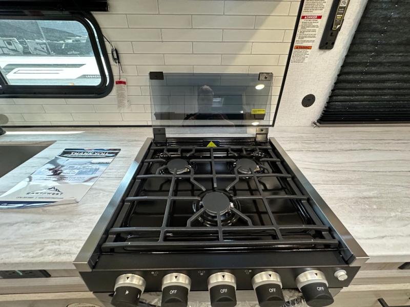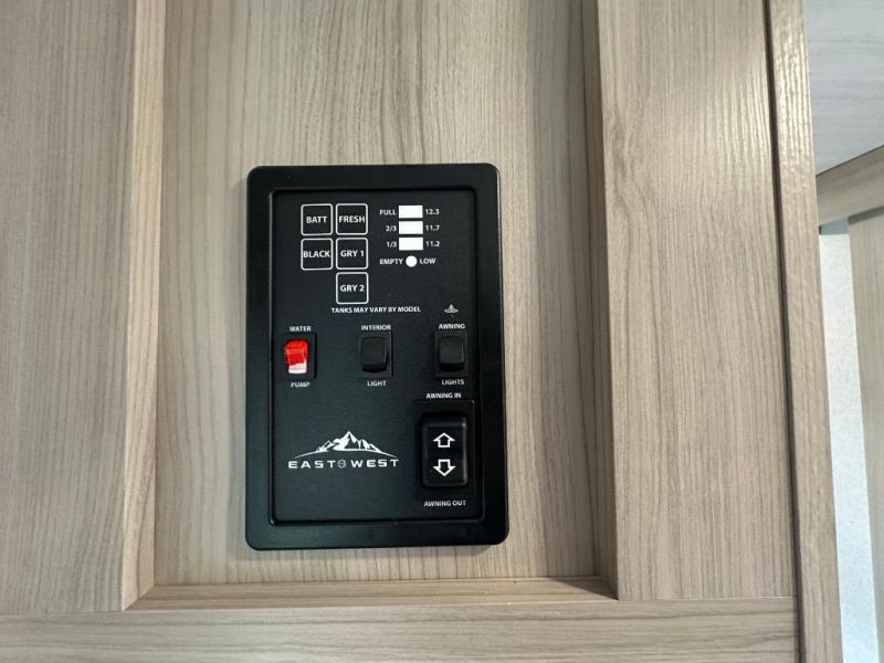Each Della Terra travel trailer by EAST TO WEST is constructed with an enclosed and heated underbelly and enclosed holding tanks so you can camp all year long. There is also a power tongue jack with an LED light for easy set up and a power awning with LED lights you can rest under after you've unpacked. The Explore Comfort Package comes seamless pressed countertops, kitchen backsplash, window valance package with black night shades, and many more comforts. You will also appreciate the Adventure Outdoor Package with backup camera prep and solar prep, a tankless water heater, an RV grill quick disconnect, and a universal docking station with battery disconnect.