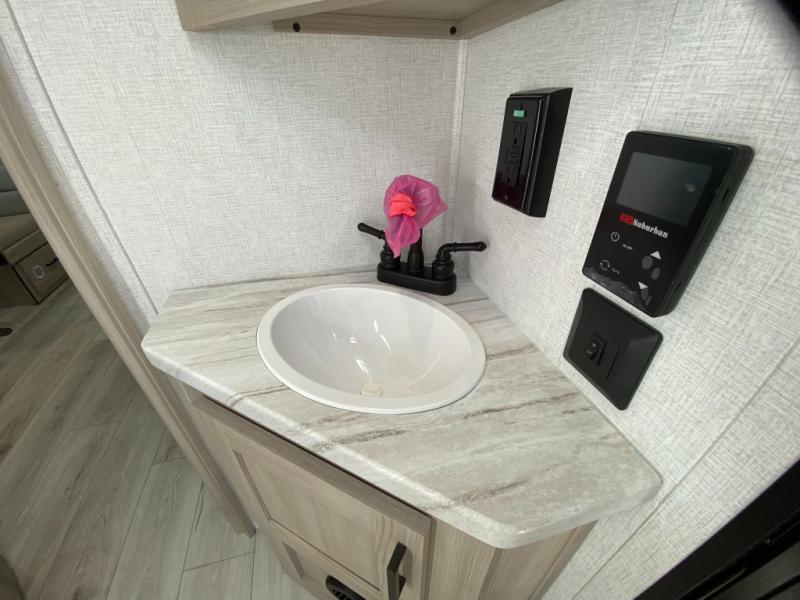 Each Della Terra travel trailer by EAST TO WEST is constructed with an enclosed and heated underbelly and enclosed holding tanks so you can camp all year long. There is also a power tongue jack with an LED light for easy set up and a power awning with LED lights you can rest under after you've unpacked. The Explore Comfort Package comes seamless pressed countertops, kitchen backsplash, window valance package with black night shades, and many more comforts. You will also appreciate the Adventure Outdoor Package with backup camera prep and solar prep, a tankless water heater, an RV grill quick disconnect, and a universal docking station with battery disconnect.