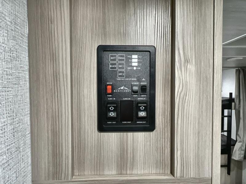 Each Della Terra travel trailer by EAST TO WEST is constructed with an enclosed and heated underbelly and enclosed holding tanks so you can camp all year long. There is also a power tongue jack with an LED light for easy set up and a power awning with LED lights you can rest under after you've unpacked. The Explore Comfort Package comes seamless pressed countertops, kitchen backsplash, window valance package with black night shades, and many more comforts. You will also appreciate the Adventure Outdoor Package with backup camera prep and solar prep, a tankless water heater, an RV grill quick disconnect, and a universal docking station with battery disconnect.