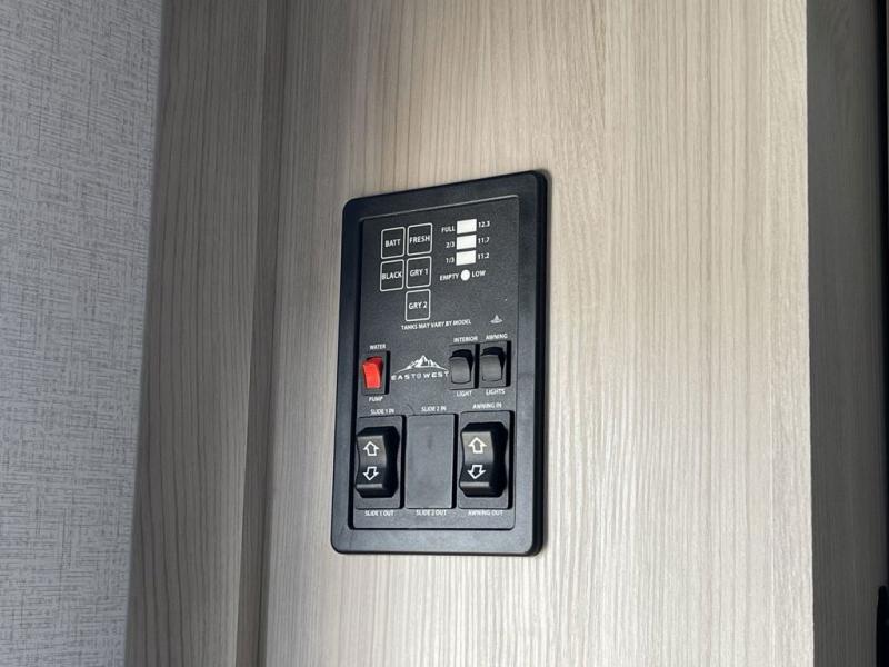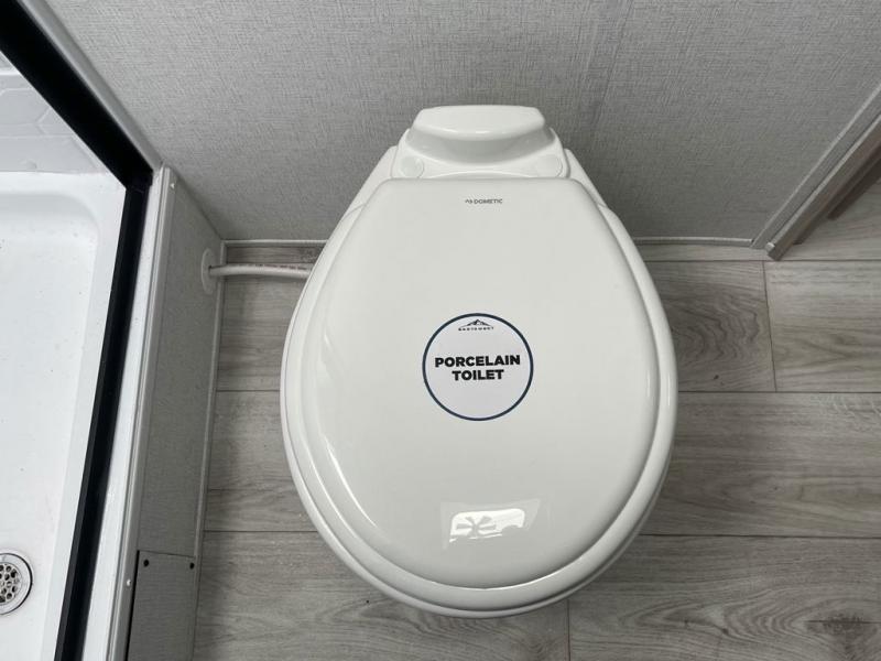 Each Della Terra travel trailer by EAST TO WEST is constructed with an enclosed and heated underbelly and enclosed holding tanks so you can camp all year long. There is also a power tongue jack with an LED light for easy set up and a power awning with LED lights you can rest under after you've unpacked. The Explore Comfort Package comes seamless pressed countertops, kitchen backsplash, window valance package with black night shades, and many more comforts. You will also appreciate the Adventure Outdoor Package with backup camera prep and solar prep, a tankless water heater, an RV grill quick disconnect, and a universal docking station with battery disconnect.