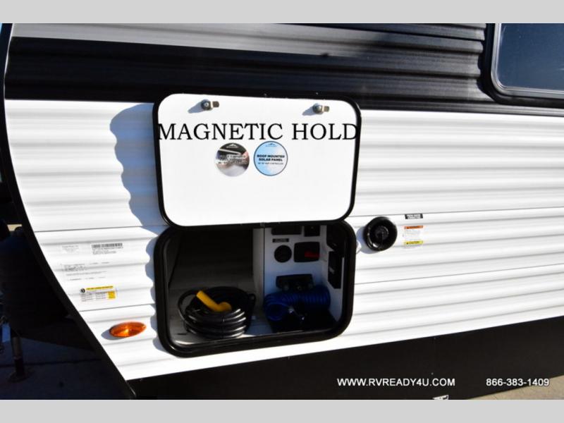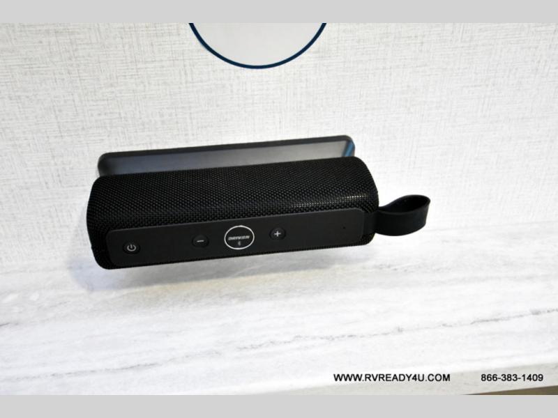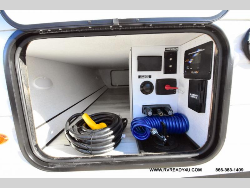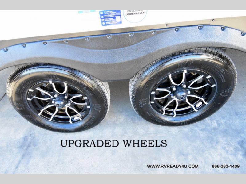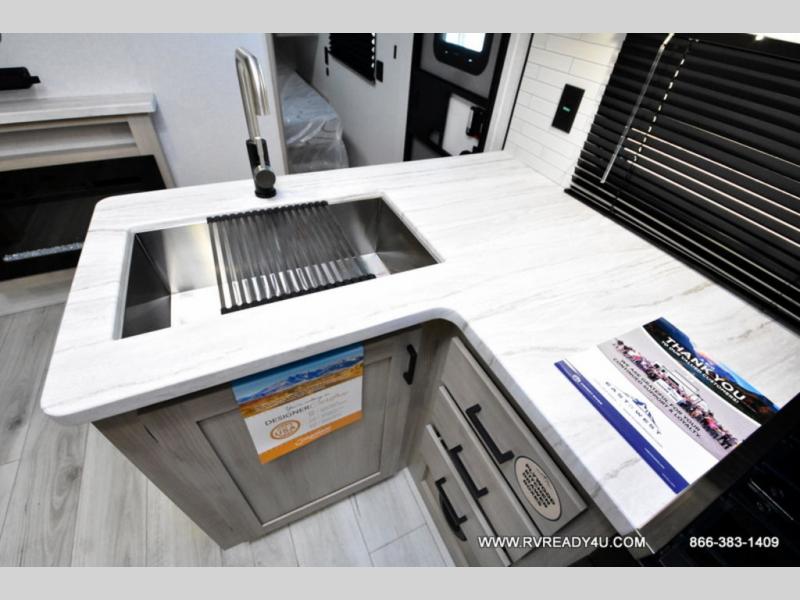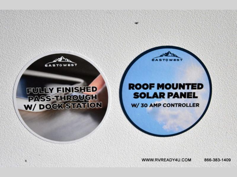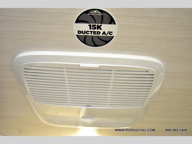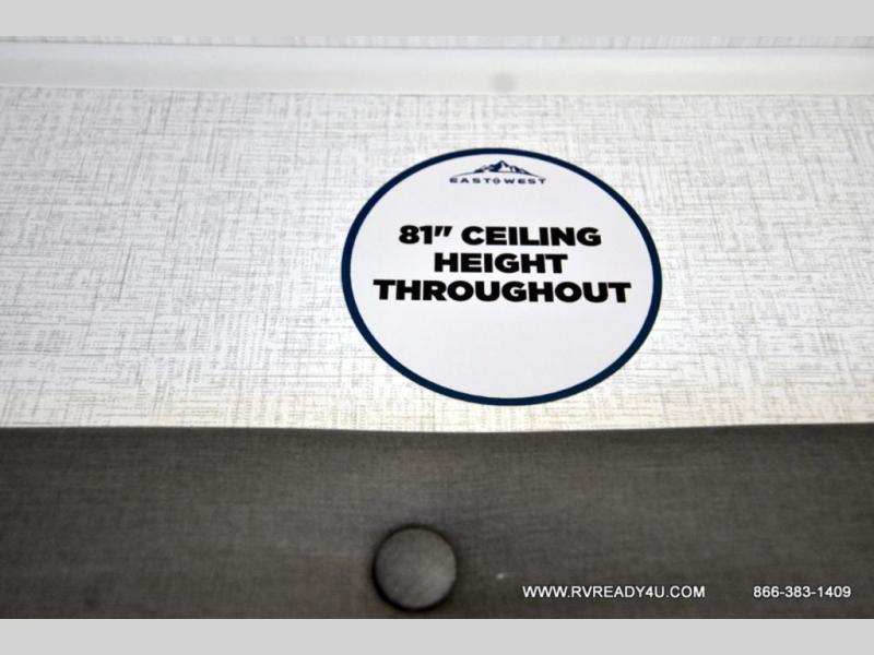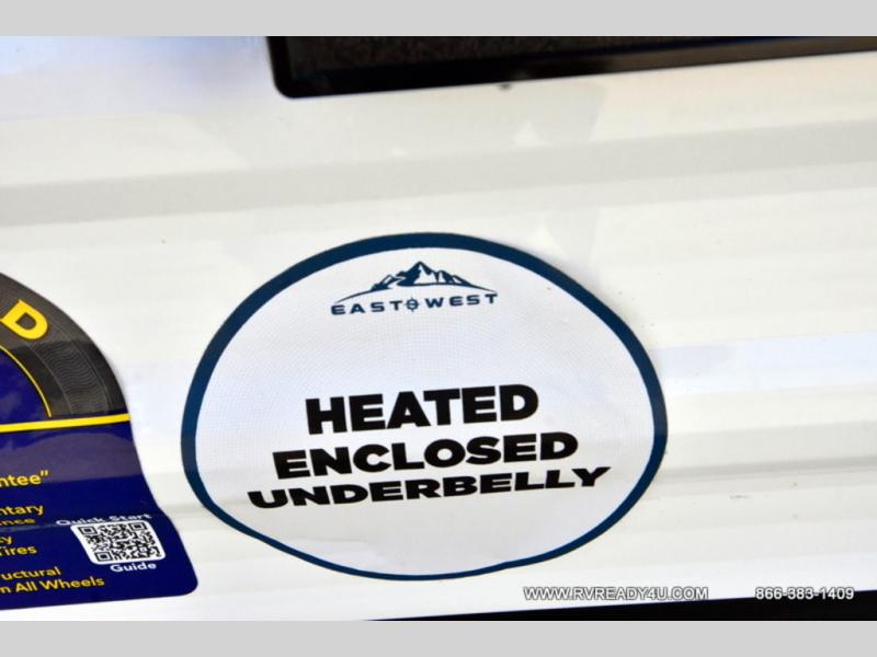 Each Della Terra travel trailer by EAST TO WEST is constructed with an enclosed and heated underbelly and enclosed holding tanks so you can camp all year long. There is also a power tongue jack with an LED light for easy set up and a power awning with LED lights you can rest under after you've unpacked. The Explore Comfort Package comes seamless pressed countertops, kitchen backsplash, window valance package with black night shades, and many more comforts. You will also appreciate the Adventure Outdoor Package with backup camera prep and solar prep, a tankless water heater, an RV grill quick disconnect, and a universal docking station with battery disconnect.