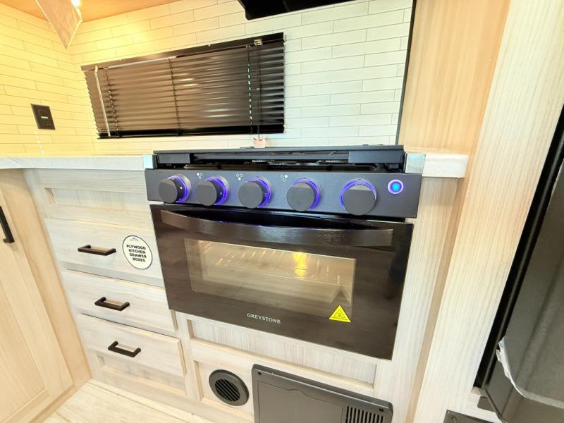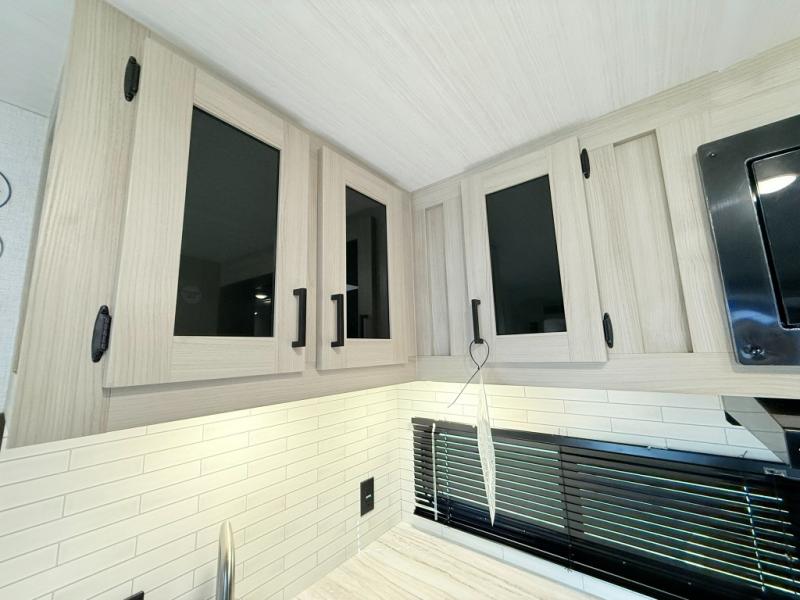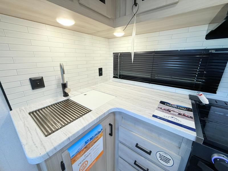 Each Della Terra travel trailer by EAST TO WEST is constructed with an enclosed and heated underbelly and enclosed holding tanks so you can camp all year long. There is also a power tongue jack with an LED light for easy set up and a power awning with LED lights you can rest under after you've unpacked. The Explore Comfort Package comes seamless pressed countertops, kitchen backsplash, window valance package with black night shades, and many more comforts. You will also appreciate the Adventure Outdoor Package with backup camera prep and solar prep, a tankless water heater, an RV grill quick disconnect, and a universal docking station with battery disconnect.