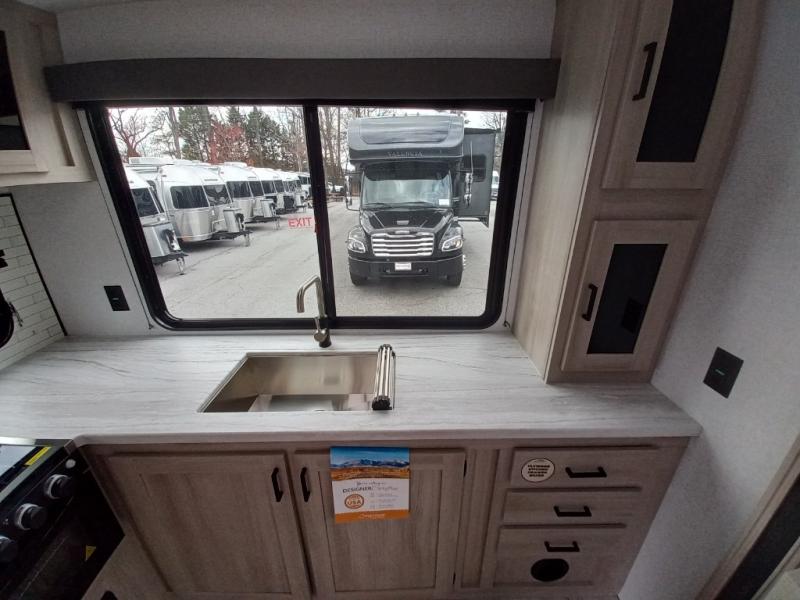 Each Della Terra travel trailer by EAST TO WEST is constructed with an enclosed and heated underbelly and enclosed holding tanks so you can camp all year long. There is also a power tongue jack with an LED light for easy set up and a power awning with LED lights you can rest under after you've unpacked. The Explore Comfort Package comes seamless pressed countertops, kitchen backsplash, window valance package with black night shades, and many more comforts. You will also appreciate the Adventure Outdoor Package with backup camera prep and solar prep, a tankless water heater, an RV grill quick disconnect, and a universal docking station with battery disconnect.