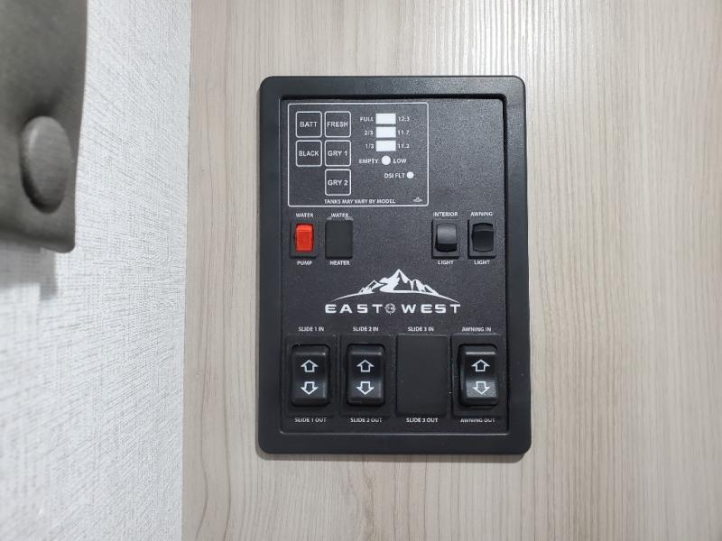 Each Della Terra travel trailer by EAST TO WEST is constructed with an enclosed and heated underbelly and enclosed holding tanks so you can camp all year long. There is also a power tongue jack with an LED light for easy set up and a power awning with LED lights you can rest under after you've unpacked. The Explore Comfort Package comes seamless pressed countertops, kitchen backsplash, window valance package with black night shades, and many more comforts. You will also appreciate the Adventure Outdoor Package with backup camera prep and solar prep, a tankless water heater, an RV grill quick disconnect, and a universal docking station with battery disconnect.