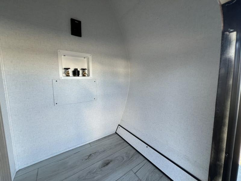 Each Della Terra travel trailer by EAST TO WEST is constructed with an enclosed and heated underbelly and enclosed holding tanks so you can camp all year long. There is also a power tongue jack with an LED light for easy set up and a power awning with LED lights you can rest under after you've unpacked. The Explore Comfort Package comes seamless pressed countertops, kitchen backsplash, window valance package with black night shades, and many more comforts. You will also appreciate the Adventure Outdoor Package with backup camera prep and solar prep, a tankless water heater, an RV grill quick disconnect, and a universal docking station with battery disconnect.