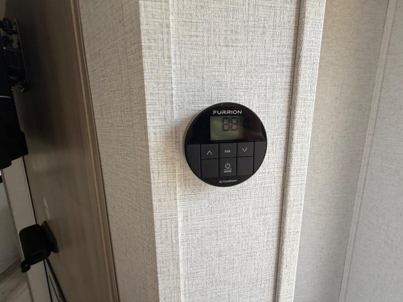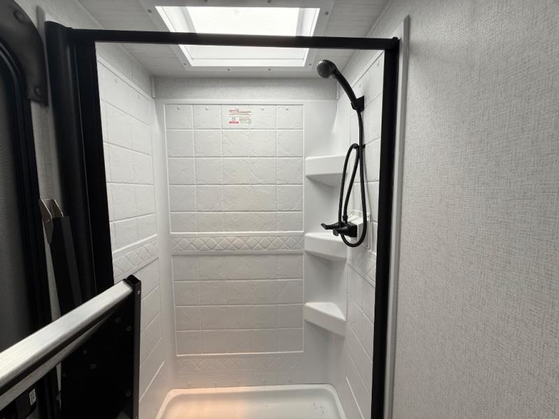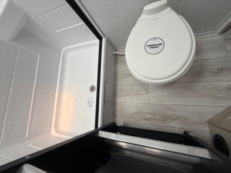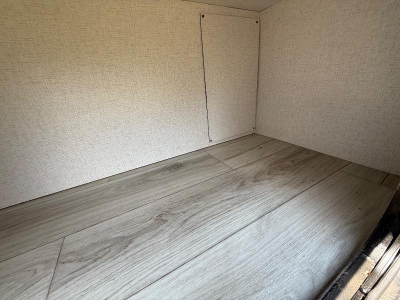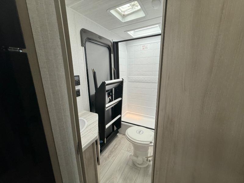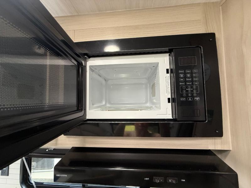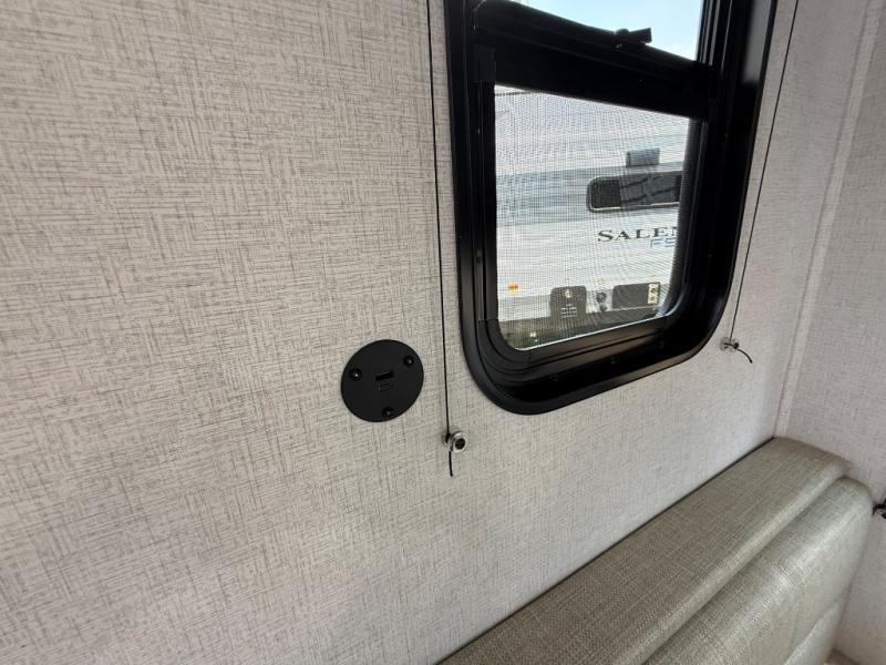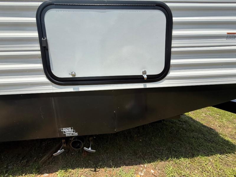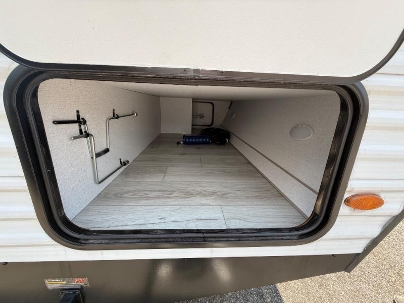 Pack your bags and hitch up this travel trailer for a fun family adventure! You will get a good night's rest on the front king bed in the front private bedroom, and the kids can sleep on the double bunk beds with storage. You could even transform the booth dinette with storage underneath it and the jiffy sofa which can be switched out for the optional theater seat or optional tri-fold sofa. The entertainment center has a fireplace for a cozy evening indoors and a hidden pantry behind it for all of your movie night snacks. With dual entry doors, it will be easy to enter and exit this unit especially from the rear corner bathroom which has one of the entry/exit doors to the unit. Enjoy cooking breakfast outside at the outdoor kitchen complete with a pull-out griddle and fridge!