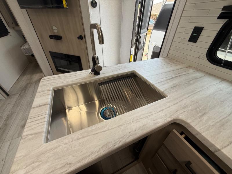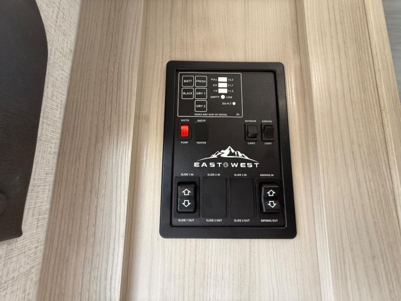 Each Della Terra travel trailer by EAST TO WEST is constructed with an enclosed and heated underbelly and enclosed holding tanks so you can camp all year long. There is also a power tongue jack with an LED light for easy set up and a power awning with LED lights you can rest under after you've unpacked. The Explore Comfort Package comes seamless pressed countertops, kitchen backsplash, window valance package with black night shades, and many more comforts. You will also appreciate the Adventure Outdoor Package with backup camera prep and solar prep, a tankless water heater, an RV grill quick disconnect, and a universal docking station with battery disconnect.