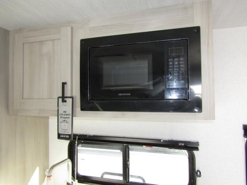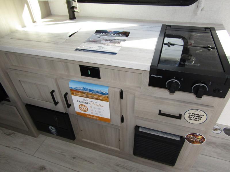 With any Della Terra LE travel trailer by EAST TO WEST, you will enjoy lightweight towing thanks to the single axle, along with many interior comforts. Each model is 8' wide with a 6' 9" interior ceiling height so you can walk around freely. There are seamless countertops also, along with motion sensor lights, a shower surround, and a USB charging station to keep your electronics ready to go. Outside, you'll find solar prep and ladder prep, an outside shower with hot and cold water, and a power awning with an LED light that will provide you with an inviting space outdoors.