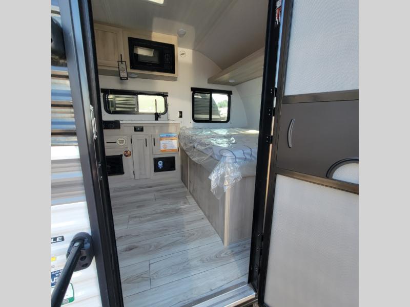 With any Della Terra LE travel trailer by EAST TO WEST, you will enjoy lightweight towing thanks to the single axle, along with many interior comforts. Each model is 8' wide with a 6' 9" interior ceiling height so you can walk around freely. There are seamless countertops also, along with motion sensor lights, a shower surround, and a USB charging station to keep your electronics ready to go. Outside, you'll find solar prep and ladder prep, an outside shower with hot and cold water, and a power awning with an LED light that will provide you with an inviting space outdoors.