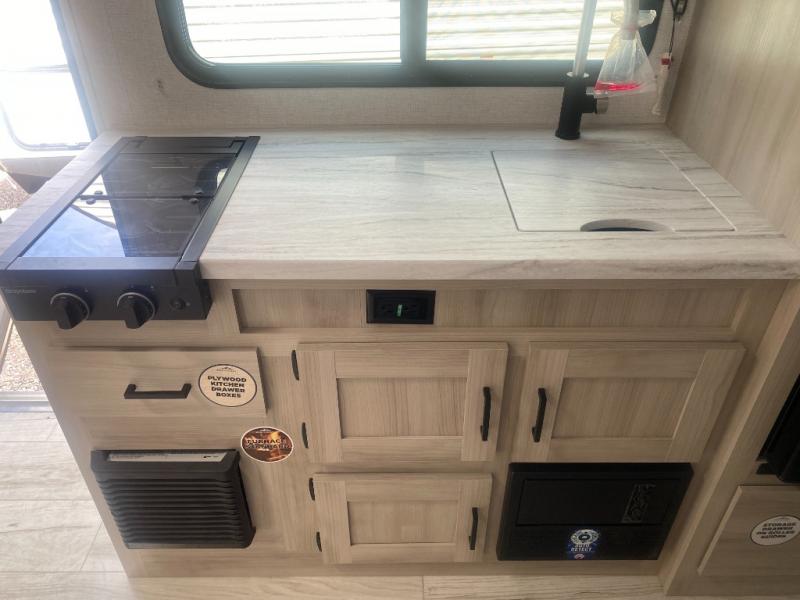 With any Della Terra LE travel trailer by EAST TO WEST, there is USA manufactured furniture, seamless countertops (no T-mold), and a 10.7 cu.ft. frost-free 12 volt refrigerator for your perishables. A Solera power awning with adjustable legs and LED light strip will also provide you with a great outdoor living area protected from both the sun and rain, and the outside hot/cold shower will let you easily wash off hiking gear or fill the dogs water bowl. These trailers also include Furrion back up camera prep, On The Go ladder prep, and slide out awning prep that will allow you to add these features to make your camping experience easier than ever. An optional power tongue jack can also be chosen for easy towing, as well as the optional Solar Package to enjoy some off-grid capabilities! Give us a call today at 602-441-4936! FINANCING AVAILABLE!