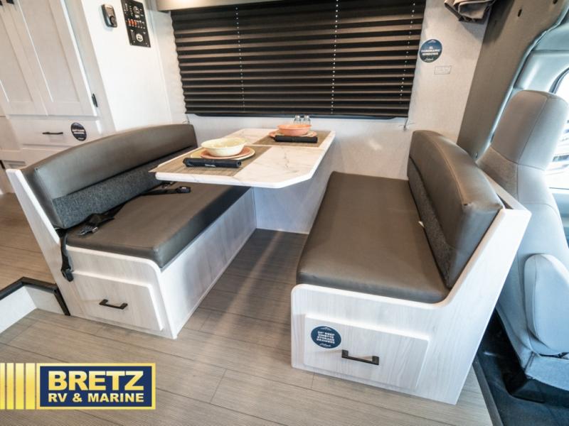 With any Entrada Class C gas motorhome from EAST TO WEST, the construction consists of an automotive painted fiberglass front cap, a Dicor DiFlex ll TPO roof membrane, and Azdel composite sidewalls for added durability. Some of the Entrada value package features include 12V tank heaters to camp during the cooler months, the Winegard Air 360+, plus backup and sideview cameras with a monitor for safety on and off the road. The interior offers a 7-foot interior height for a spacious feel, and 12V USB charge ports will keep your electronics powered up. Choose an Entrada for its tasteful design, attention to detail, bright interior and affordable price-point!