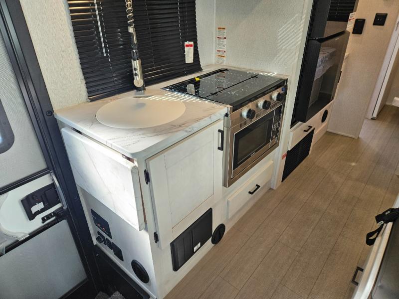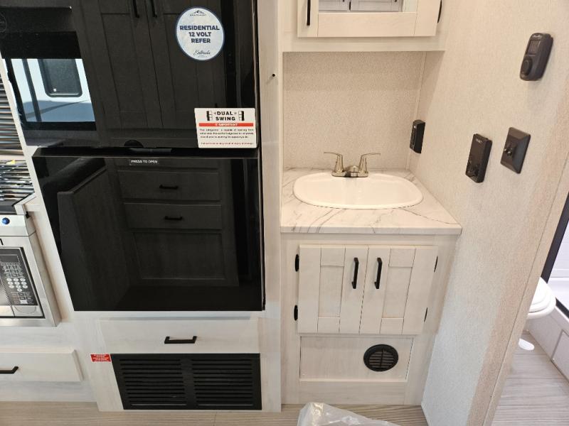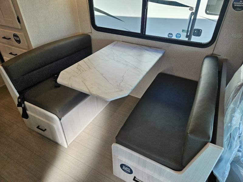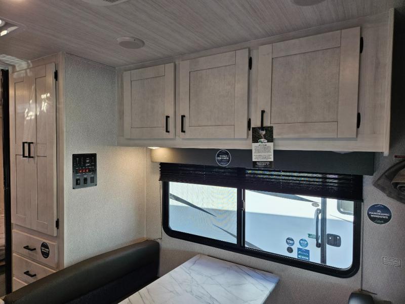 With any Entrada Class C gas motorhome from EAST TO WEST, the construction consists of a completely laminated coach, a one-piece molded fiberglass front cap, 2" thick sidewalls with Azdel composite exterior, a Dicor Diflex ll TPO roof, and integrated entry step. Some of the Entrada value package features include 12V tank heaters to camp during the cooler months, the Winegard Air 360+, plus backup and sideview cameras with monitor for safety on and off the road. The interior offers a 7-foot interior height for a spacious feel, and hardwood shaker style cabinets. Choose an Entrada for its tasteful design, attention to detail, bright interior and/or affordable price-point!